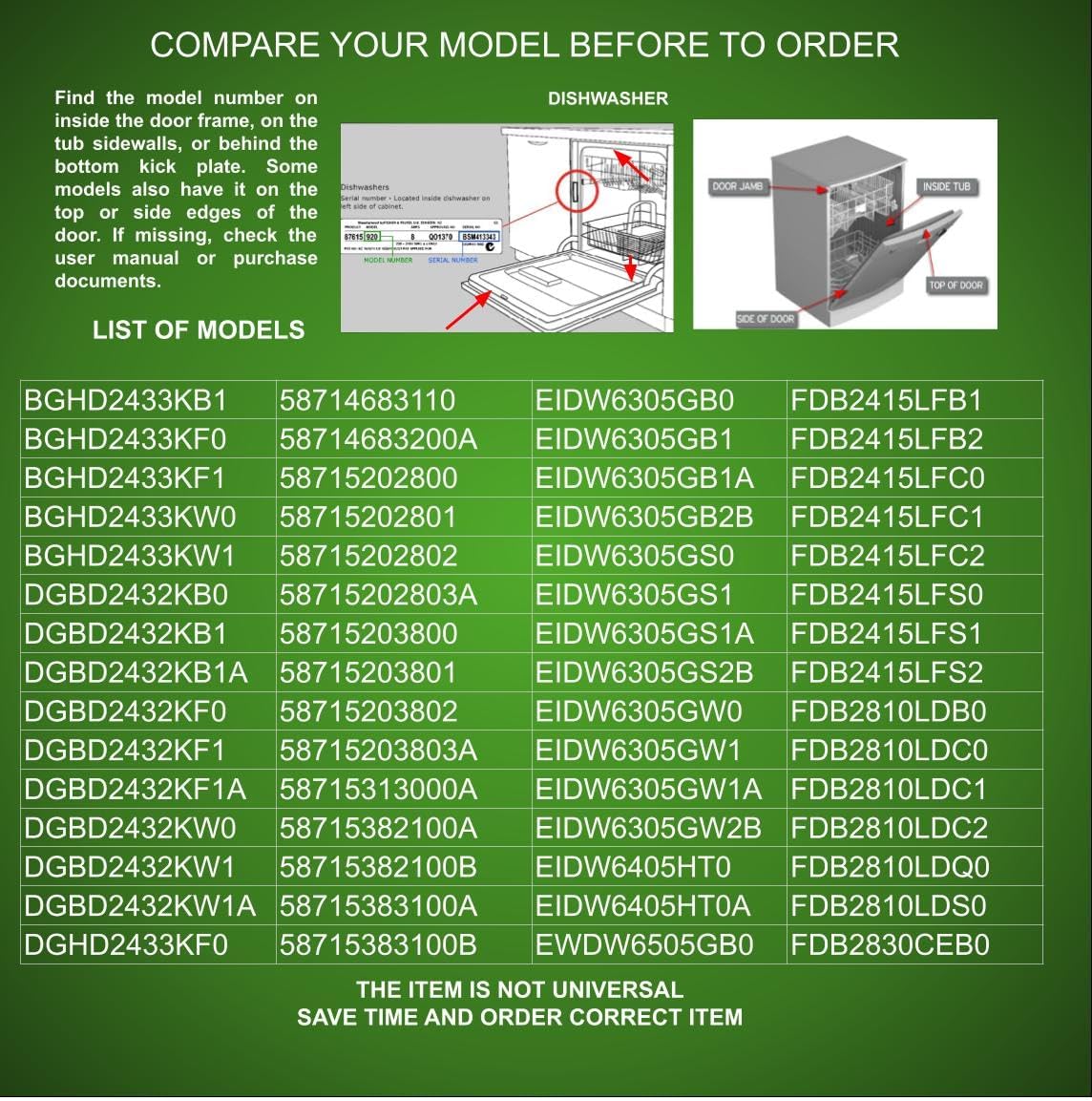 ORIGINAL CONNECTORS, New part number 154574405, 154860103, 154452704-JF Perfect fit old and new serials, your old part number is no longer available, compare your old number and order now. Fit Models , MODELS - 30 or less copy and paste EDW7505HPS0 EDW7505HPS0A EDW7505HPS1B EDW7505HSS0 EDW7505HSS0A EDW7505HSS1B LGBD2432LW0B PLD3461RDC1 LGHD2433KM1." FGHD2472PW0 PLD2851RDC3 PLD2851RDC0 EIDW6105GS2B EIDW6405HT1B FGHD2433KB1 58714683110 58714683200A 58715202800 58715202801.