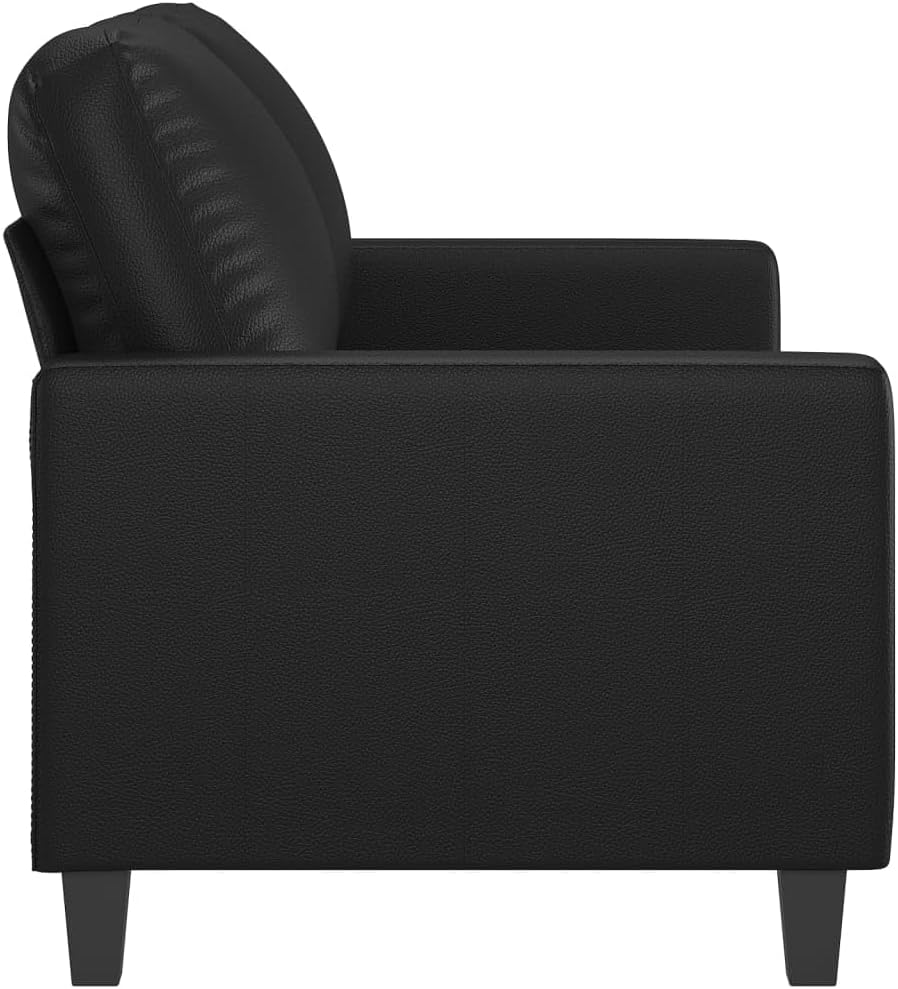 This Modern Black Faux Leather Loveseat is a stylish and practical addition to any living space, mixing contemporary elegance with comfort. Its sleek design and roomy dimensions easily seat two, making it perfect for couples or small gatherings and adding a touch of class to your office or living room.Comfortable Seating: The loveseat features plush, padded armrests and a boxed cushion seat that offers a cozy sitting experience. Perfect for lounging or reading, it's an invitation to relax after a busy day.Durable Materials: Made from top-quality faux leather, this sofa is built to resist daily wear and tear while keeping its stylish look. A robust metal frame guarantees it lasts for years.Spacious Design: With a seat width of 47.2 in, this loveseat comfortably sits two adults, ideal for smaller spaces or larger seating arrangements. It's perfect for chats, movie nights, or just kicking back.Versatile Style: Its modern look, with simple lines and a matte finish, fits right in with contemporary setups, showcasing your taste. It's a great match for different interior designs from minimalist to industrial.Easy Care: The smooth faux leather surface is super easy to clean with a damp cloth, meaning you can spend more time enjoying yourself and less time on upkeep.Colour: Black Shape: RectangularMaterial: Farbic Artificial LeatherIndoor/Outdoor: Indoor OnlyCover Included: NoRoom: Living RoomCapacity: Seats 2Maximum Number of People: 2Maximum Weight: 220 kgDimensions: 138 x 138 x 80 cm (W x L x H)Surface Height: 41 cmLeg Height: 10 cmWeight: 198 kgSeat Depth: 50 cmSeating Capacity: 2Swings: NoDelivery Contains: 2-seater sofaAssembly Required: YesRecommended Number of People for Assembly: 2
