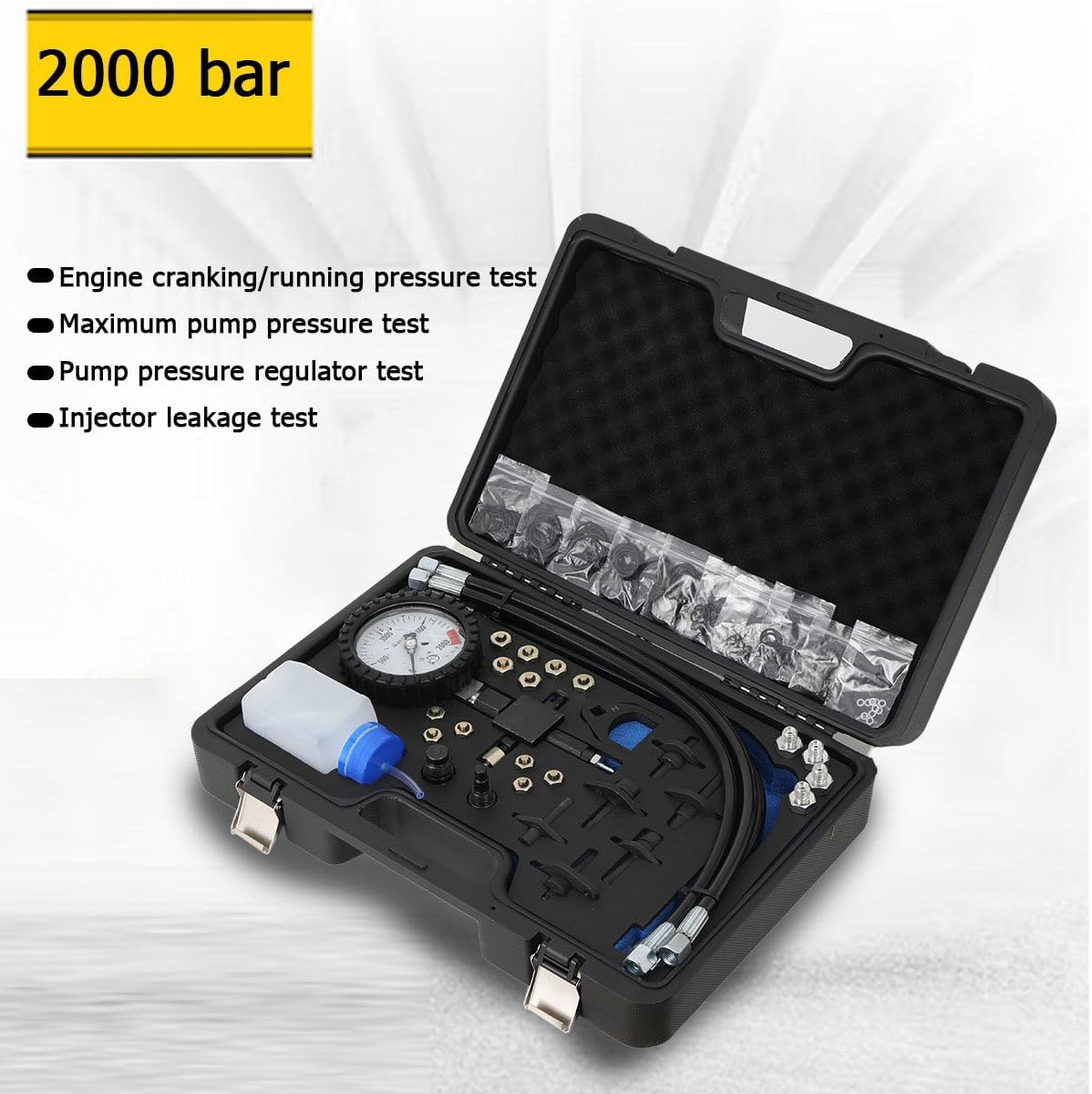 Specifications:Color:BlackMaterial:Stainless Steel & AluminiumGauge: 2000bar mechanical, oil flled, stainless steelSafety Valve: Releases pressure at 1300barDummy Pump Regulators: 9Fuel Rail Blanking Plugs: 6pieces M12x1.5 & 6pieces M14x1.5High Pressure Flexible Hoses: 4pieces 52cm hosesDischarge bottle & hose: 500ml with 20cm hoseRubber Washers: 100piecesPackage size: 45 x 32 x 15cmPackage weight: 6.05kgPackage Including1 x Diesel High Pressure Tester Kit