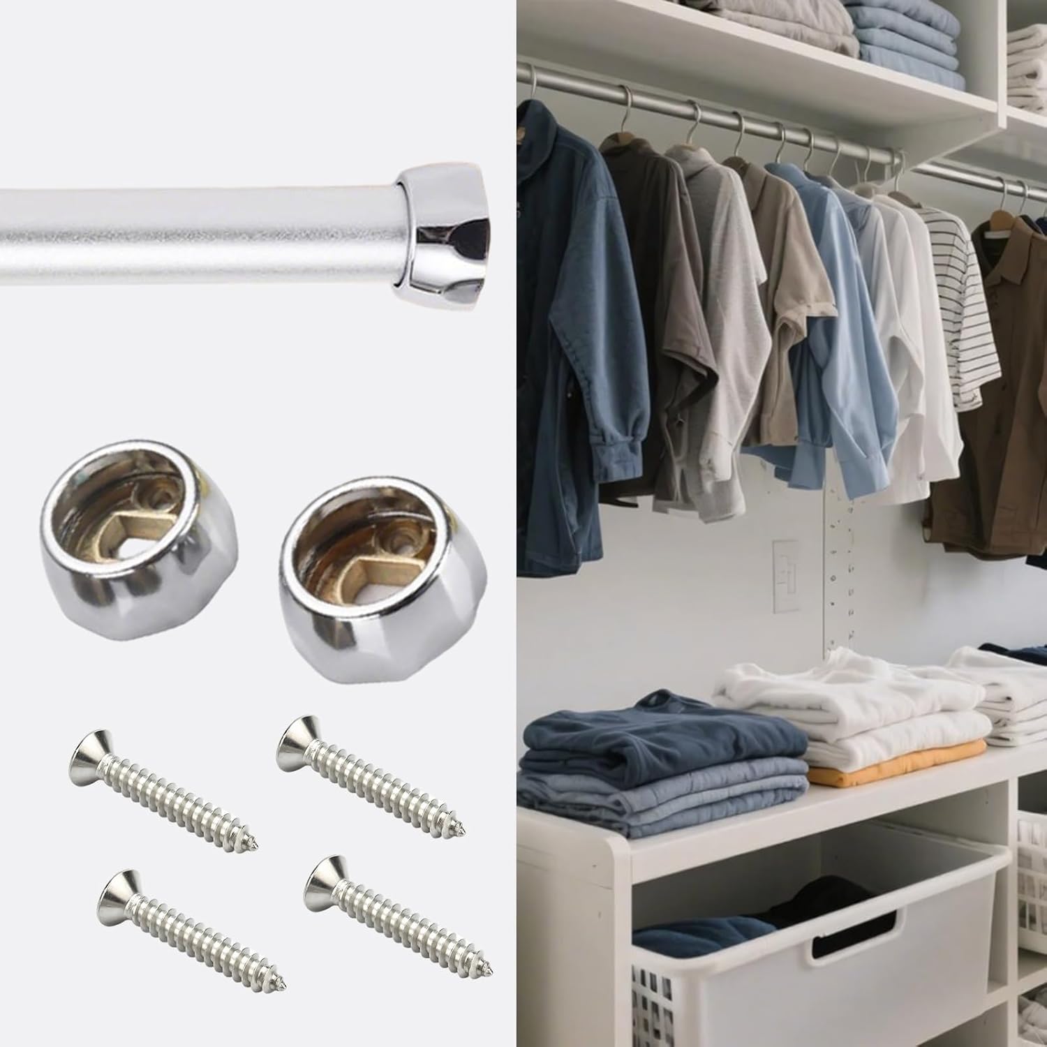 Tired of rummaging through a cluttered closet? Fed up with flimsy, bendy hangers?Our sturdy hanger rods keep clothes hanging perfectly, never sagging. Even the heaviest garments stay securely in place. Say goodbye to piles of clothes and transform your closet into an organized, tidy space.Package List: - 1 x Closet rod- 2 x Flange- 4 x ScrewsSpecification: - Clothes Rail Length : 19-63in (48-160cm)- Clothes Rail Thickness: 1.2mm- Clothes Rail Diameter: 25mm (1in)- Color: Black, Silver, Gold, ChampagneNote: - The required rod length = the internal width of the wardrobe - 1.4cm( the thickness of the flange base plates ) Features:- Metallic finish complements your home decor seamlessly.- Complete accessories for effortless installation, even without experience.- Strong load capacity effortlessly supports heavy winter - garments without bending.- Anodized finish ensures a smooth, refined surface for effortless sliding and easy garment access.- Dual functionality as both a clothes hanger rod and curtain rod meets diverse home needs.- Maximize space utilization by neatly hanging clothes, freeing up room to keep your closet organized, tidy, and fresh.Warm Tips:- Handmade measurements may have slight variations, which is normal.- Actual colors may differ slightly due to screen display variations.- Please accurately measure the length you require before purchasing.