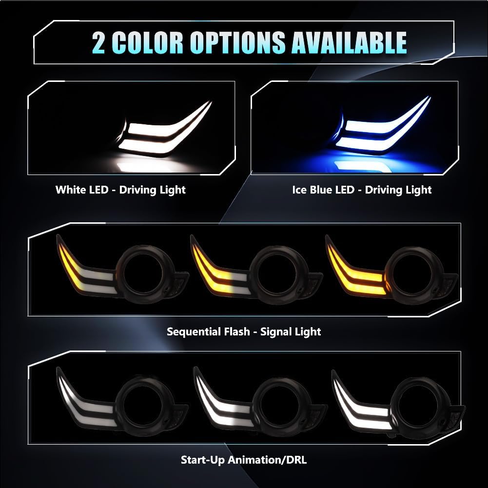 VANKUB 2PCS Front Sequential Front Fog Light for 2014-2024 Toyota 4Runner DRL Daytime Running Light, Upgrade Switchback Amber Turn Signal Light, Customize Blue or White Light as Daytime Running Light