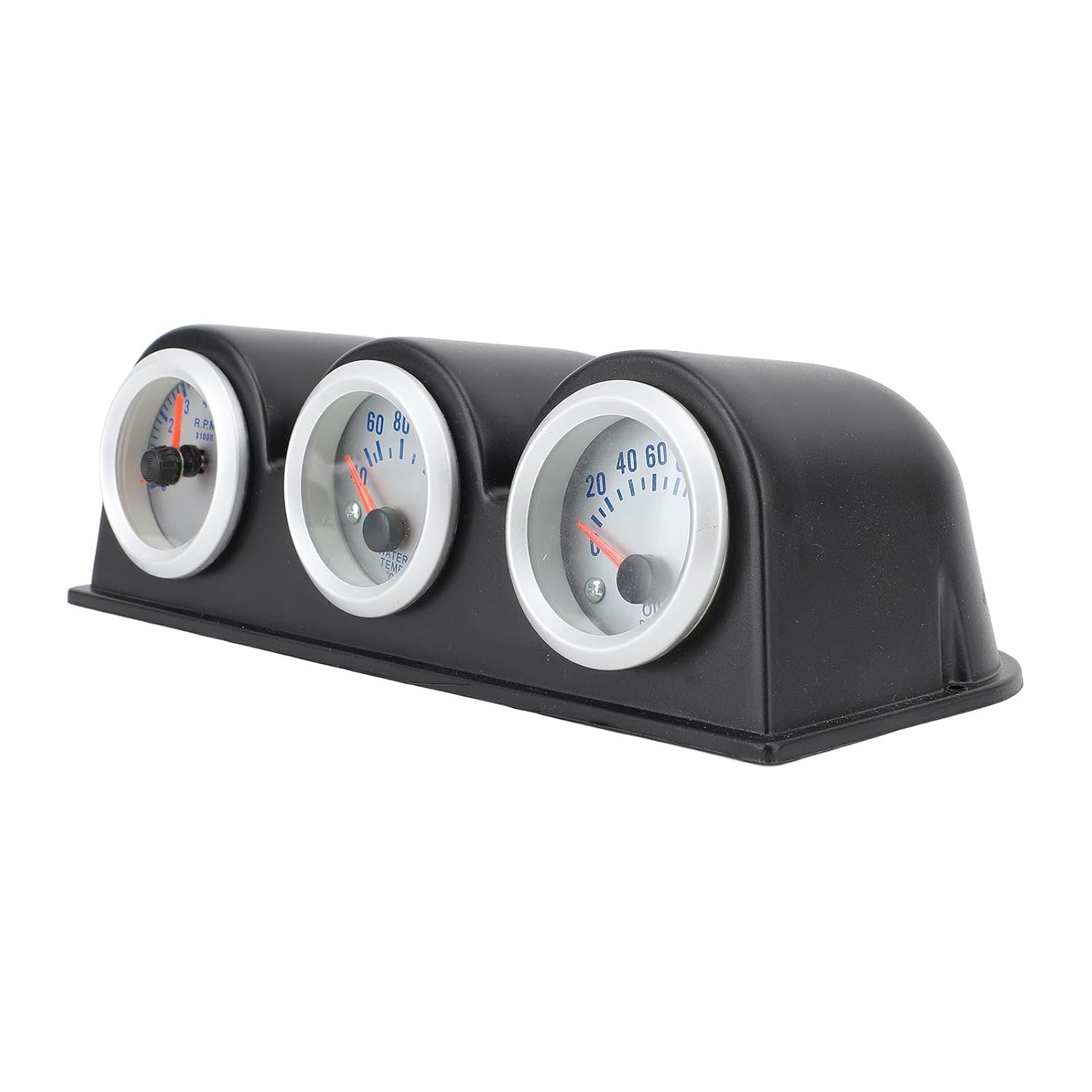 1. Premium Material: Made of premium ABS materials, the 3 in 1 car gauge meter providing excellent performance, high temperature and resistance, not easy to damage, to ensure the long lasting use. 2. Stylish Look: This 3 in 1 gauge instrument panel has black housing and inside white dial with red pointer, the stylish and sporty look adding a fashion sense to your car interior. 3. Clear Display: This car triple gauge is equipped with LED circuit board, the numbers and pointer are clearly showed, easy for reading in the darkness. 4. Versatile Gauge: This gauge includes a water temperature gauge, tachometer, and oil pressure indicator, achieving accurate measurement. 5. Enhanced Safety: The water temp tachometer oil pressure gauge can make the driver more comprehensive and intuitive understanding of the vehicle status, understand the current vehicle work situation, timely find and solve problems. Spec: Item Type: 3 in 1 Car Gauge Meter Material: ABS Gauges Included: Tachometer, Water Temp Gauge, Oil Pressure Gauge Applicable : Suitable for All 12V 4/6/8 Cylinder Gasoline Cars PackageList: 1 x Car Gauge Meter 2 x Accessories 2 x Instruction Manual 12 x Gasket 6 x Nut