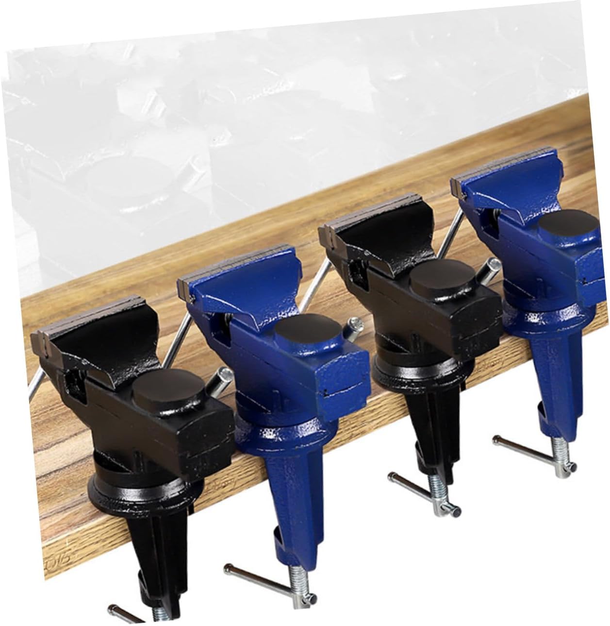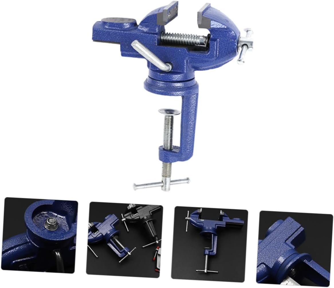 Package List 1 x Table Vise Features - Size: . 19 x 16 x 7 cm/7.5 x 6.3 x 2.8 inch Vise for Woodworking Repair. - Great for smaller projects: Jewelry, hobbyists, crafts, model building, electronics and much more Swivel Base Table Clamp. - Material: Iron & Steel 360 Degree Swivel Vise - Color: Blue Teaching Tool. - Great for wood, plastic, light metalworking and jewelry DIY projects such as crafts, model building, electronics and more. Professional Bench Clamp - Iron die-casting molding, high rigidity and light weight Rotating Small Bench Vise. - Maximum opening of this jaw is 6.5 mm, which makes this bench clamp can fit workbench and tables Home Clamp-on Bench Vise. - Adopting quenching and re-fire technology to increase its hardness and strength, which is durable for long-term use and reliable to -on Table Vise.Goods InformationClamp-on Bench Vise It is a light-duty bench vise, compact and portable.Clamp-on Table Vise It is a necessary household hand tool kit that makes your life easier.Multi-function Bench Clamp And it is easy to carry with you anywhere for convenient use.Teaching Tool The rotating table vise is made of cast iron and steel materials