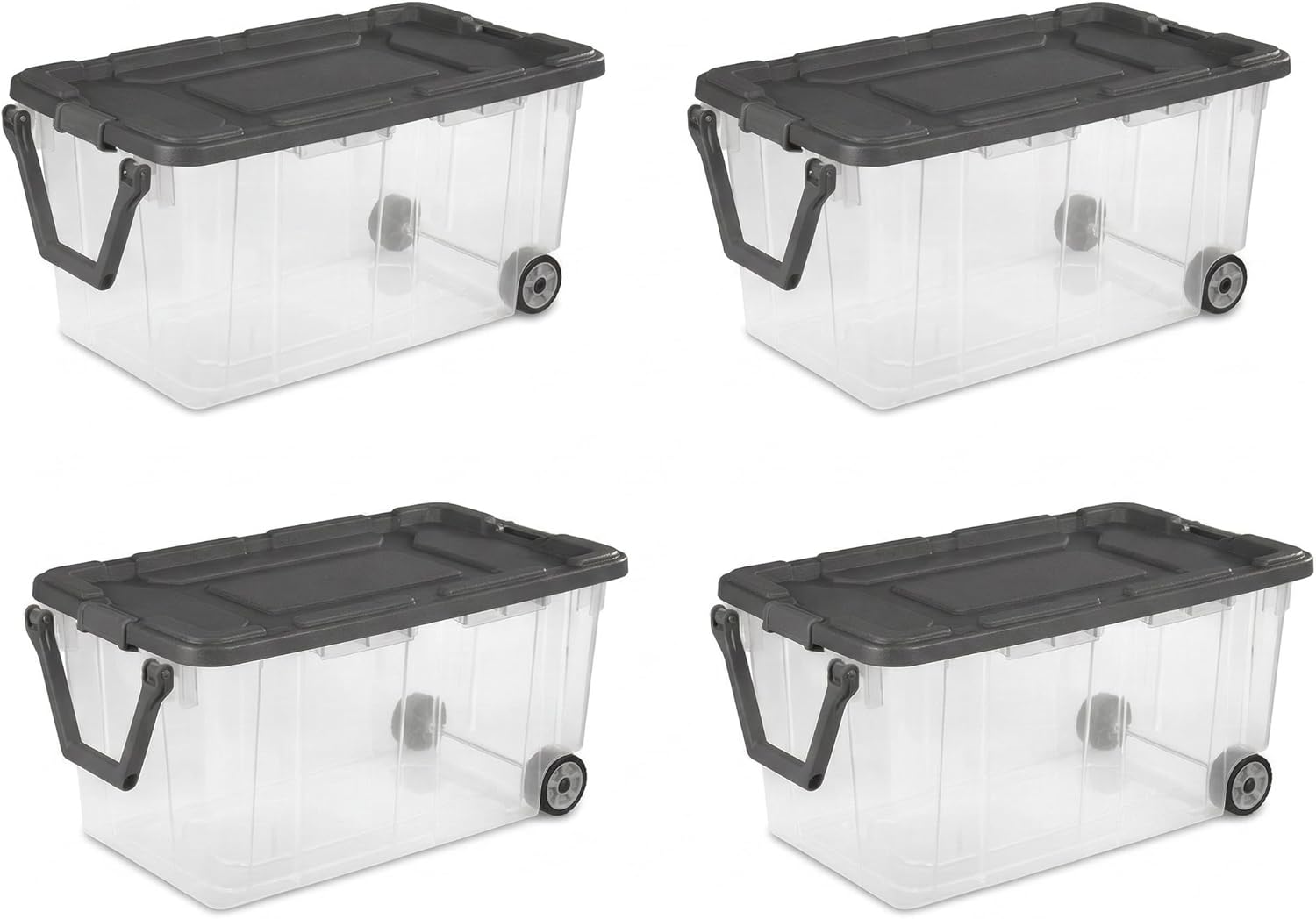 Elevate your storage game with the 4-Pack Storage Bins - the ultimate solution for decluttering and maximizing space in your home, garage, or office. Designed with heavy-duty construction and innovative features, these 40-gallon totes are the perfect companions for all your storage needs. Engineered to withstand the demands of everyday use, these storage bins boast a robust, non-slip grip design that ensures your belongings stay secure and protected. The tough plastic material is built to resist cracking, even under the weight of heavy loads, making them a reliable choice for long-term storage. Mobility is key when it comes to storage, and these bins deliver. Equipped with large wheels and a sturdy metal axle, you can easily maneuver them over rough surfaces, whether you're transferring them from the garage to the basement or rolling them across uneven terrain. The ergonomic handle rotates up, allowing for comfortable pulling and transport. With a generous 40-gallon capacity, these storage bins offer ample space to accommodate a wide range of items, from seasonal clothing and sports gear to tools and workshop supplies. The deep recessed lids provide secure stacking, helping you maximize your available storage space and keep your belongings organized. The tight-fitting, drip-resistant lids create a barrier against moisture, dust, and pests, ensuring your stored belongings remain in pristine condition, no matter the weather or environment. The robust latches provide extra security, keeping the lid firmly in place, while the textured surface offers a sure grip when carried. The deep recessed lids also allow for efficient stacking, allowing you to make the most of your available storage space. Unlock the power of effortless organization with the 4-Pack Storage Bins. Elevate your storage game and reclaim your space with these durable, versatile, and user-friendly totes.