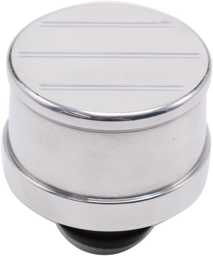 Specification: Condition:100% Brand New Colour:Silver Material: Aluminum & Rubber Surface: Polished Push-In Style 1" Neck Ball Milled / 3-Line Design Replaceable Foam Element 2.50" Overall Height (1.75" Above valve cover suface) Fits for Any Valve Cover with 1.25" Hole Package includes: 2x Polished Valve Cover Breathers; 2x Rubber Grommets.