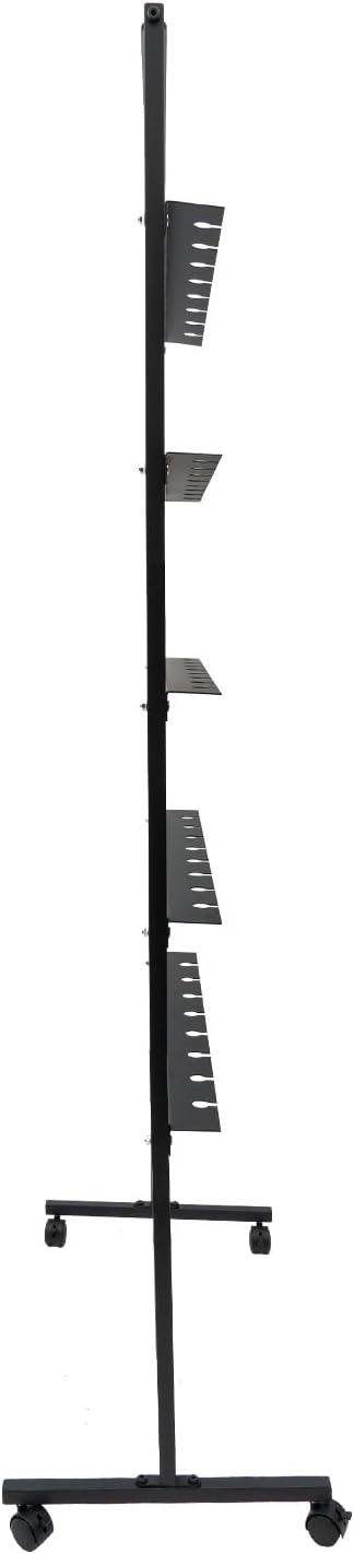 DescriptionOur 5-tier champagne wine glass holder is an exquisite decoration designed specifically for celebratory occasions. It can elegantly display up to 40 champagne or wine glasses, creating a romantic and elegant atmosphere. It adopts a stable structure, with each tier carefully designed to ensure the cups can be securely placed while showcasing their beautiful curves and crystal-clear texture. Its multi-layered design not only saves space but also serves as a focal decoration at parties, providing convenient dining services for guests.ApplicationIt is ideal for bars, wedding occasions, parties, hotels, restaurants, engagement ceremonies, birthday parties, dinner parties, or other events to serve or display champagne flutes and wine glasses.FeaturesAppropriate Spacing: Adequate spacing avoids congestion and friction between wine glasses, and also makes the product more aesthetically pleasing.Stable Base: The T-shaped base enhances the stability of the product's placement, making it not easy to tip over.Smooth Edge: The rounded and smooth edges not only add to the aesthetics of the product but also improve the safety of use.SpecificationsColor: BlackStyle: ModernMaterial: SteelProcess: Cutting, Welding, High-temperature Baking PaintAssembly Required: YesMount Type: Floor MountedNumber of Tiers: 5Number of Wine Glasses Hanging Per Tier: 8Number of Universal Wheels: 4(All with Brakes)Product Size: 25.98*15.75*67.72inPackage Size: 29.53*8.66*3.15inGross Weight: 17.64lbsNet Weight: 15.87lbsPackage Included1* Champagne Wine Glass Holder1* English Installation DiagramOther Accessories for AssemblyNotes1. Please double-check the size before ordering.2. This product does not include wine glasses and other decorations.