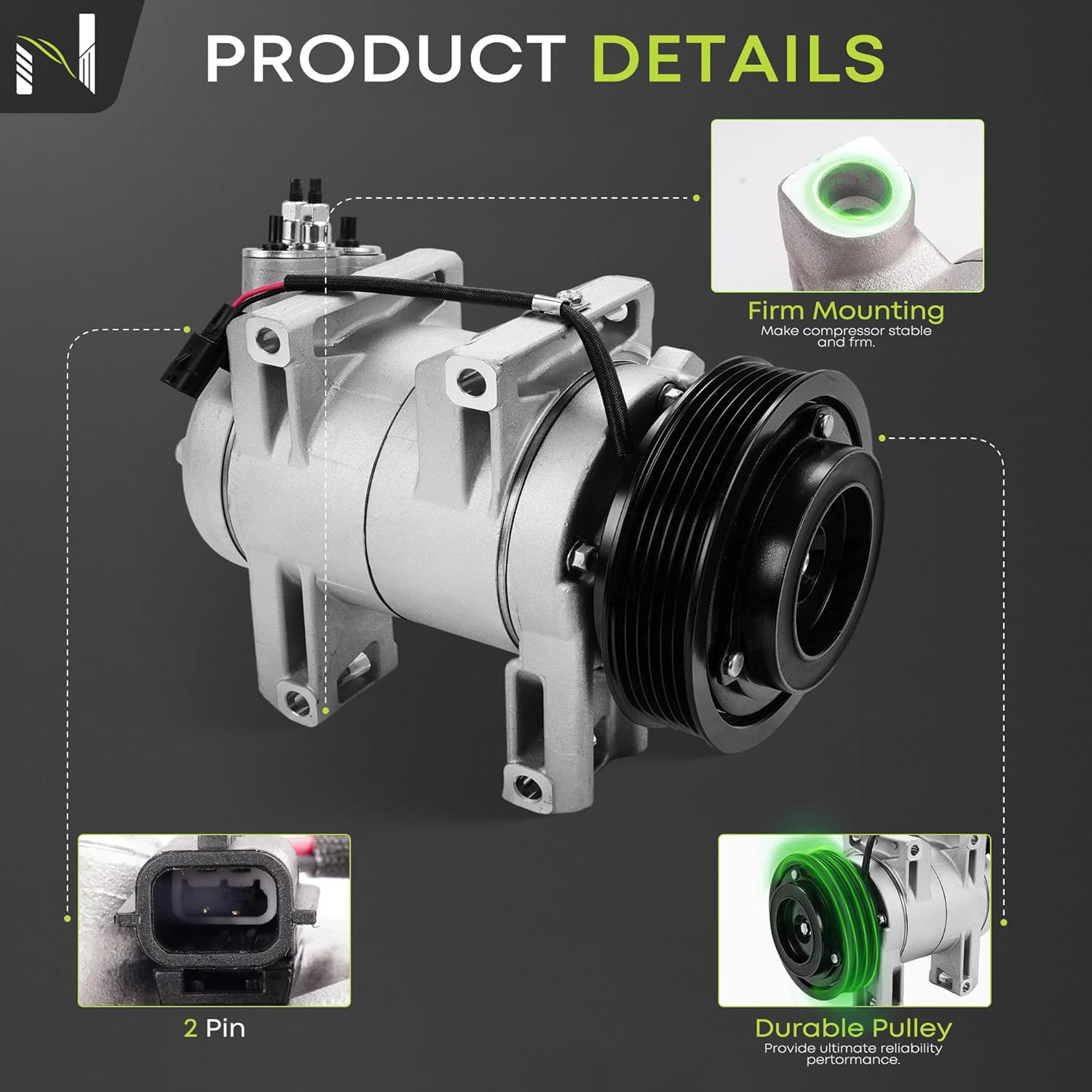 AC Compressor with Clutch for Nissan Rogue 2008-2013 & Rogue Select 2014-2015 2.5L 4-Cylinder