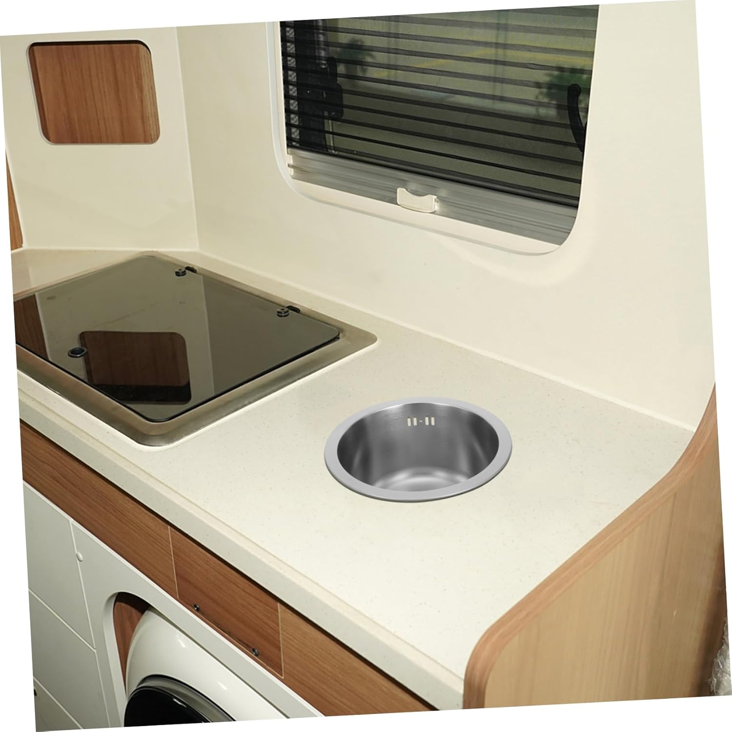 Package Include 1 x basin 1 x sewer pipe 1 x extension pipe 3 x adapters 3 x washers Features -Convenient design: with included drainage accessories and an overflow hole, this sink offers for water management and easy cleaning camper sink -Color:Silver stainless steel parts basin -Size:11.00X11.00X7.50cm/4.32X4.32X2.95in over the sink dish drying rack -Material:Stainless Steel vanity sink - construction: crafted from stainless steel, this sink offers durability and resistance to rust and corrosion, ensuring it stands the test of time round drop in sink -Size:28.00X28.00X16.00cm/11.00X11.00X6.29in kitchen sink -Spacesaving solution: the compact, round design is for small kitchens or rvs, providing an efficient use of space while maintaining full functionality waterfall kitchen sink -Wide range of applications: suitable for use in bars, restaurants, and other commercial settings, this sink meets diverse needs, making it a and versatile choice rv round drop in sinkGoods Informationoutdoor sink station for RVs and campers, the stainless steel round sink combines practicality with style.over the sink dish mini size and single bowl design make it ideal for spaces, while the included drainage accessories and overflow outlet efficient water management.bathroom sinks Whether used as an undermount or drop-in sink, its silver finish and build provide both aesthetic appeal and performance, making it a must-have for outdoor enthusiasts