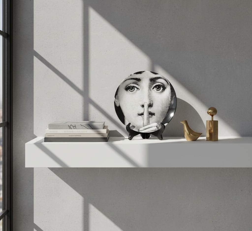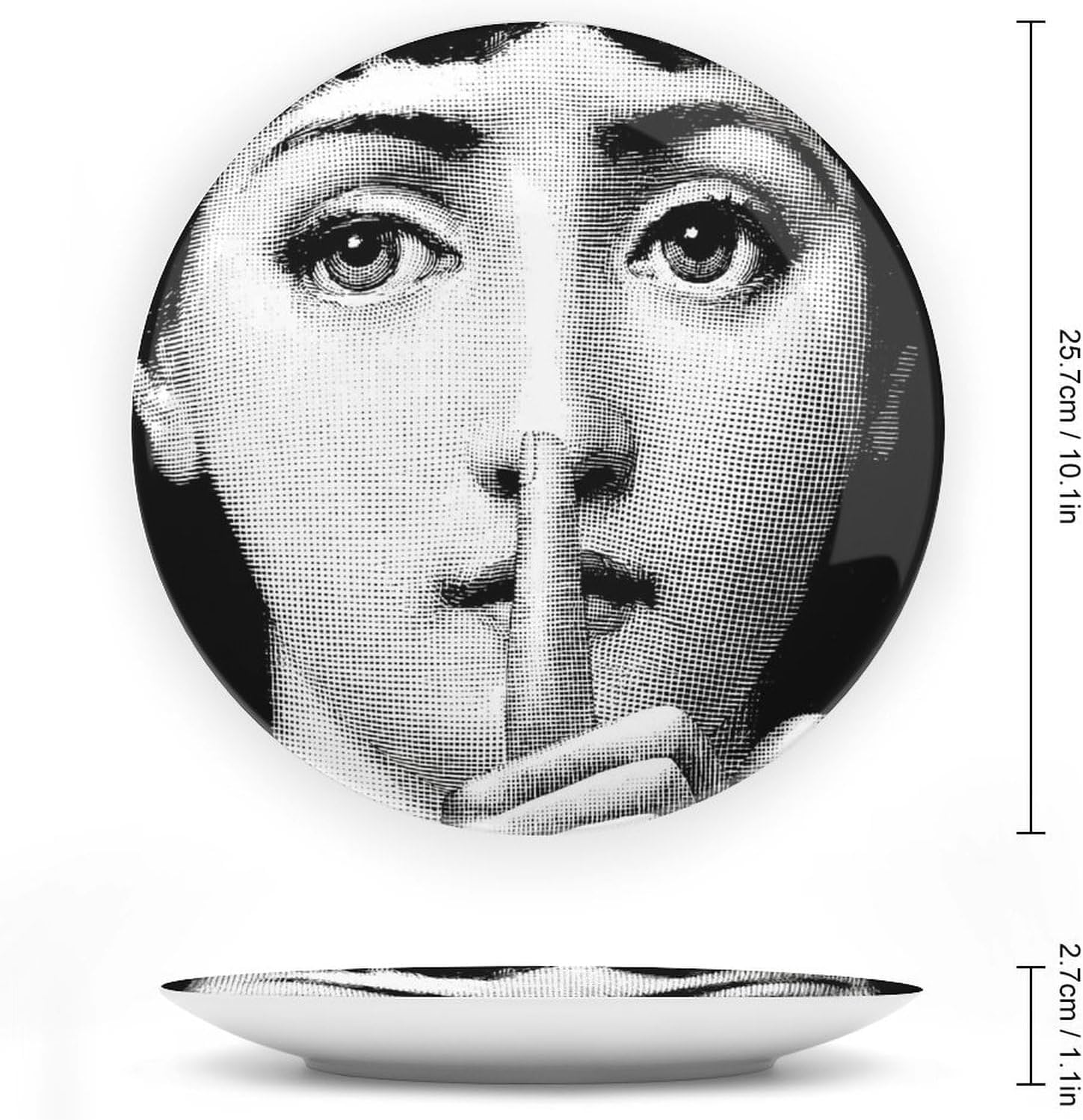 This 10-inch Black & White Decorative Plate is designed as a bold statement piece for modern interiors. Its large size immediately sets it apart from smaller decorative plates, creating stronger visual impact when displayed on a wall, shelf, or tabletop. Crafted from ceramic and featuring a striking monochrome graphic face design, this decorative plate draws inspiration from editorial photography, contemporary illustration, and gallery-style wall art. The high-contrast black and white aesthetic complements minimalist, modern, and creative spaces. Ideal for home or office decor, this large decorative plate functions as an art object rather than functional tableware, making it a standout accent in any interior. For decorative display only. Not intended for food use.