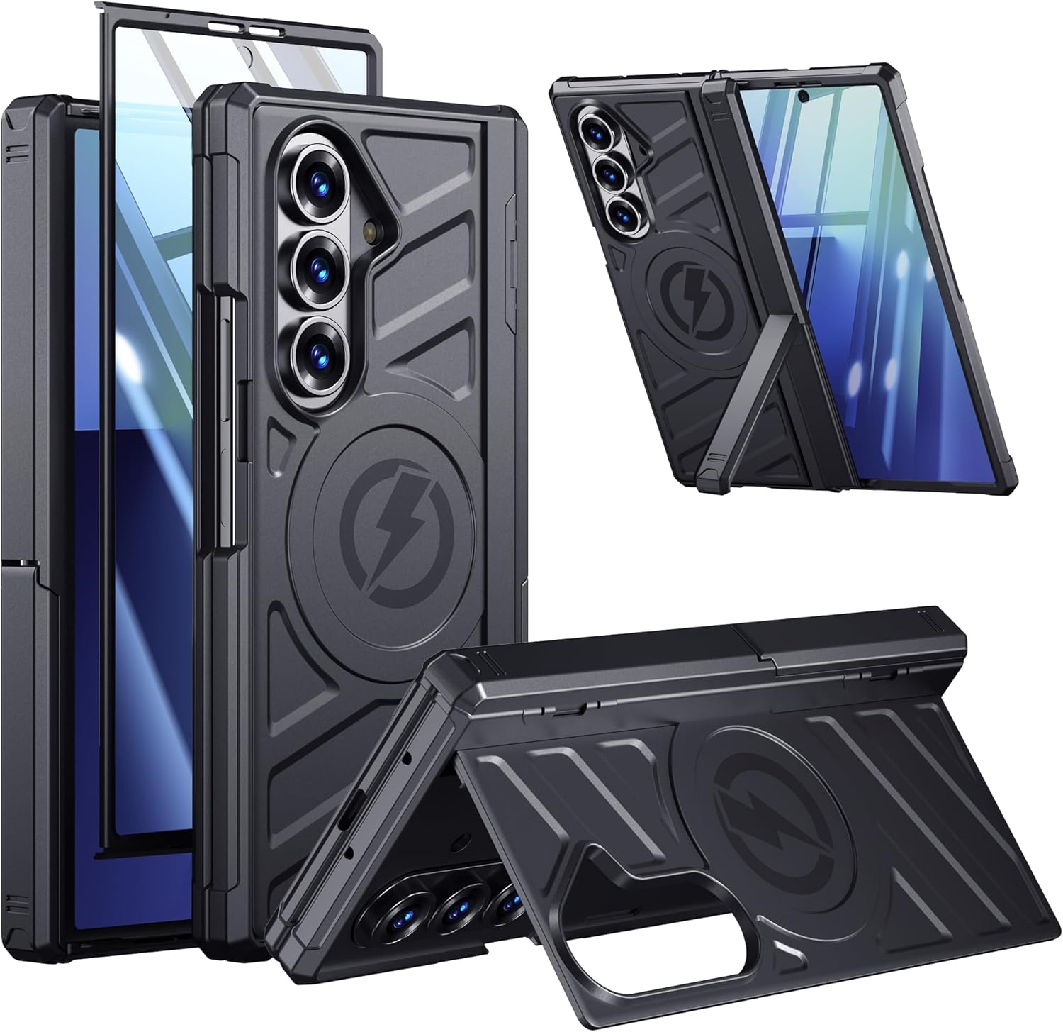 Armor Magnetic for Samsung Galaxy Z-Fold-7 Case: Dual Stand Horizontal & Vertical, Privacy Screen Protector, Hinge Protection, Fit for MagSafe Wireless Charging, Shockproof Magnet Phone Cover, Black
