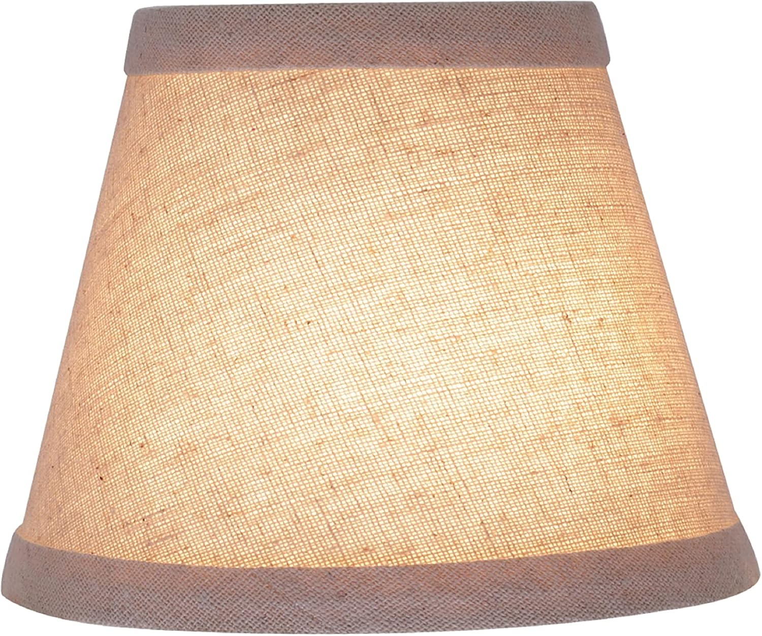 Aspen Creative Item #32058-6A Aspen Creative offers a 6-pack empire shaped clip-on lamp shade in oatmeal that will enhance any space. Shade Dimensions: 3" Top x 5" Bottom x 4" Height The shade is made with a clip-on styled fitter that is most compatible with torpedo chandelier light bulbs but can also be used with other bulbs that are similar in size. Clip-on style fitter designed for bare bulb chandeliers and wall sconces that use candelabra bulbs with an E12 base and 40 watt max, bent tip style bulbs not recommended (bulbs not included).Crafted with precision and attention to detail, our lamp shades are made with high-quality materials that are built to last. They are made to withstand daily use while still maintaining their shape and beauty. This product is suitable for a wide range of lighting options including small table lamps, accent lamps, candle stick lamps, chandeliers, and wall sconces, and bedroom night light lamps.