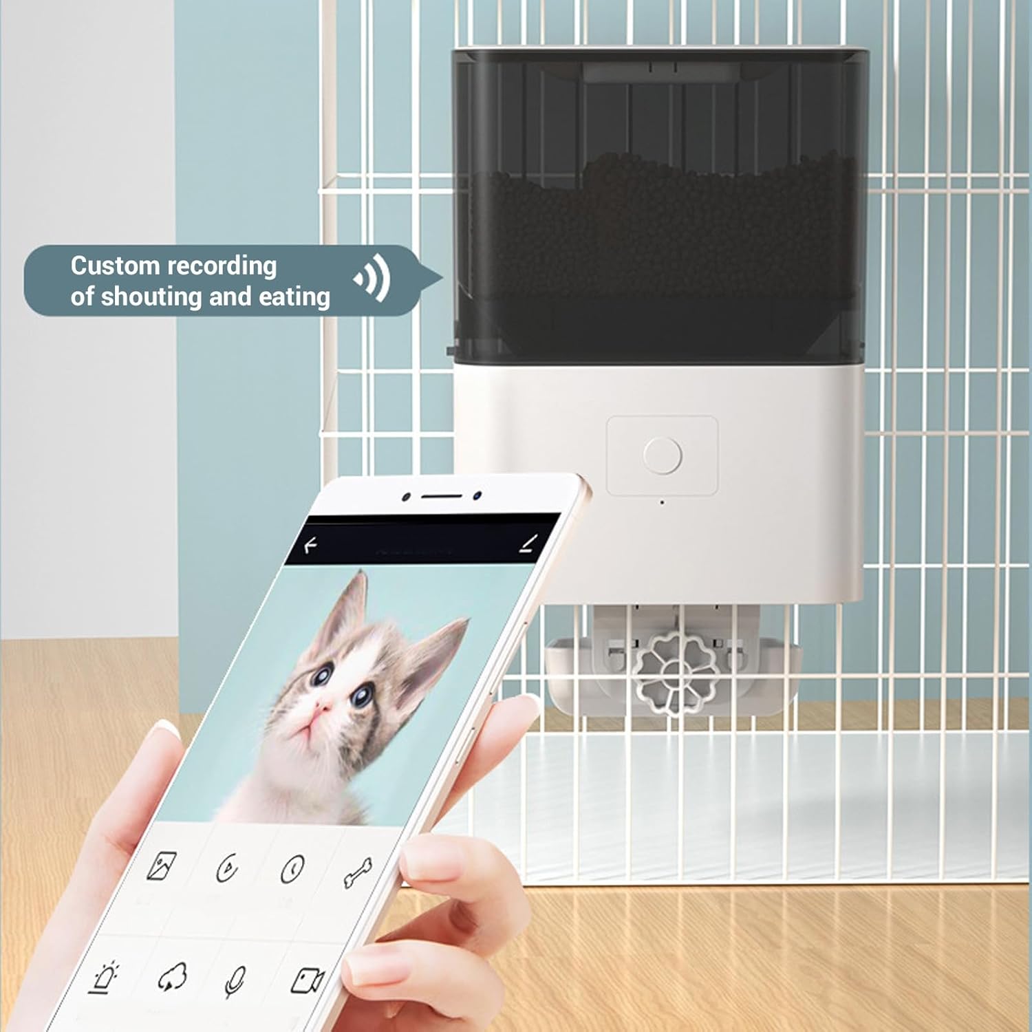 1. Smart WiFi Connectivity: This hanging rabbit feeder allows for intelligent remote control via WiFi, enabling you to provide scheduled and portioned meals for your pet anytime, anywhere, ensuring they never miss a meal. 2. Health Conscious Feeding: Set a scientifically designed dietary plan to promote health eating habits in your pet. The hanging auto bunny food bowl dispenser prevents overfeeding or hunger, keeping your furry friend in optimal health. 3. Space Saving Multi Functional Design: With its innovative design, the automatic pet feeder can be easily hung on pet cages, saving valuable space. Auto cat feeder simplifies feeding and cleaning while ensuring convenience for both you and your pet. 4. Smart Notification System: Cat food container, stay informed about your pet's feeding needs with built in reminders for refilling food, detecting low supplies, or power outages, ensuring your pet's dietary routine remains uninterrupted. 5. Excellent Plastic Material: Cat food dispenser, constructed from food grade plastic, this hanging cage automatic food water dispenser is safe, giving you peace of mind that your pet's health and safety are prioritized. Specification: Item Type: Smart Hanging Cage Feeder Material: Plastic Size: Approx. 23 x 9 x 30cm / 9.06 x 3.54 x 11.81in Battery Type: 1 x D Battery (Battery Not Included) How to Use: Directly Use. Package List: 1 x Smart Pet Feeder (Total 9 Components) 1 x Plug 1 x USB Cable 1 x Manual