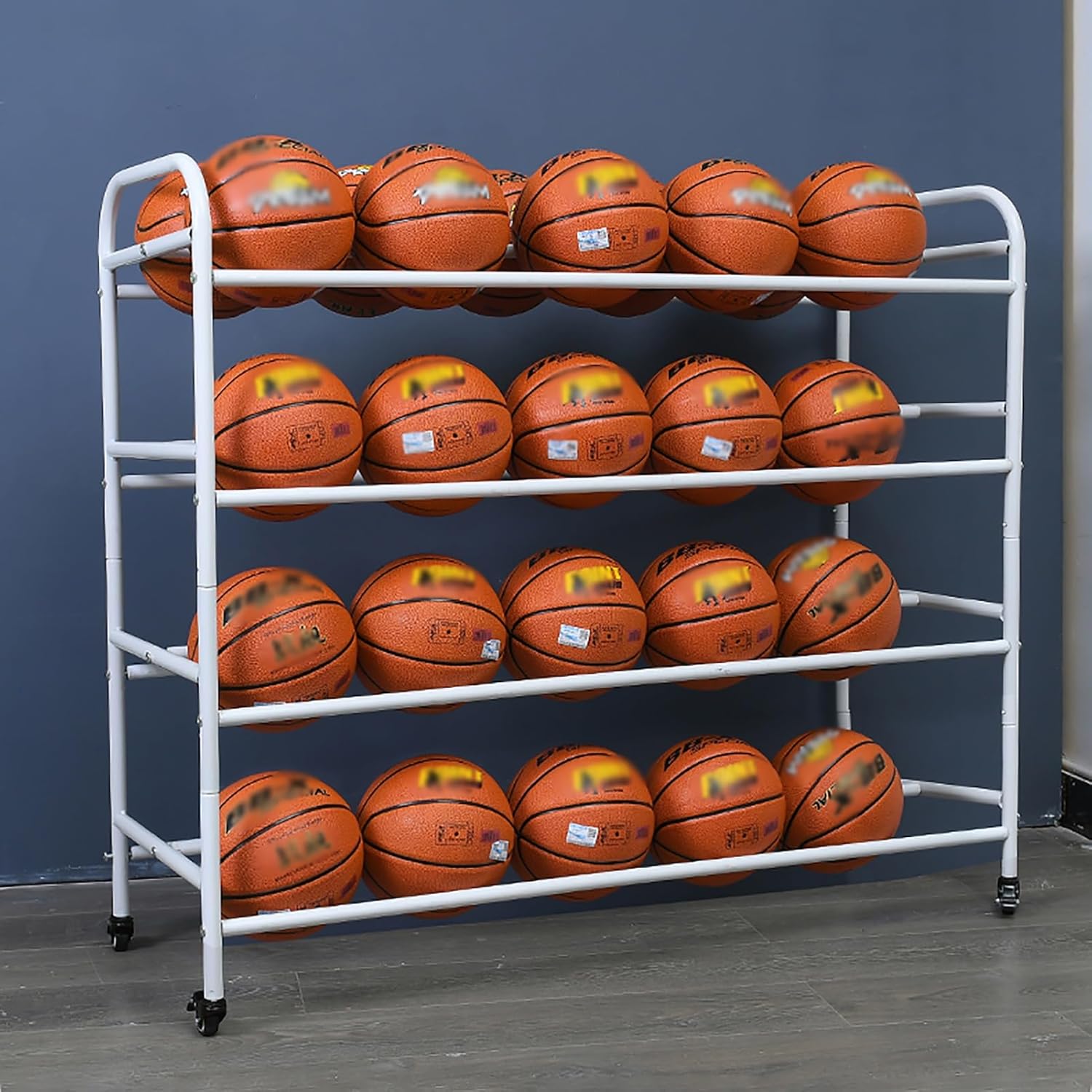 • 1,Stainless Steel Basketball Cage:Large Capacity Ball Rack: This 4-Tier Double Row Storage Rack is designed to hold up to 48 #4 Balls and 40 #5, #6, and #7 Basketballs, accommodating a total weight of 65kg (140lbs). Ideal for organizing sports equipment, this durable rack maximizes space while ensuring easy access to your balls, making it perfect for gyms and sports facilities.