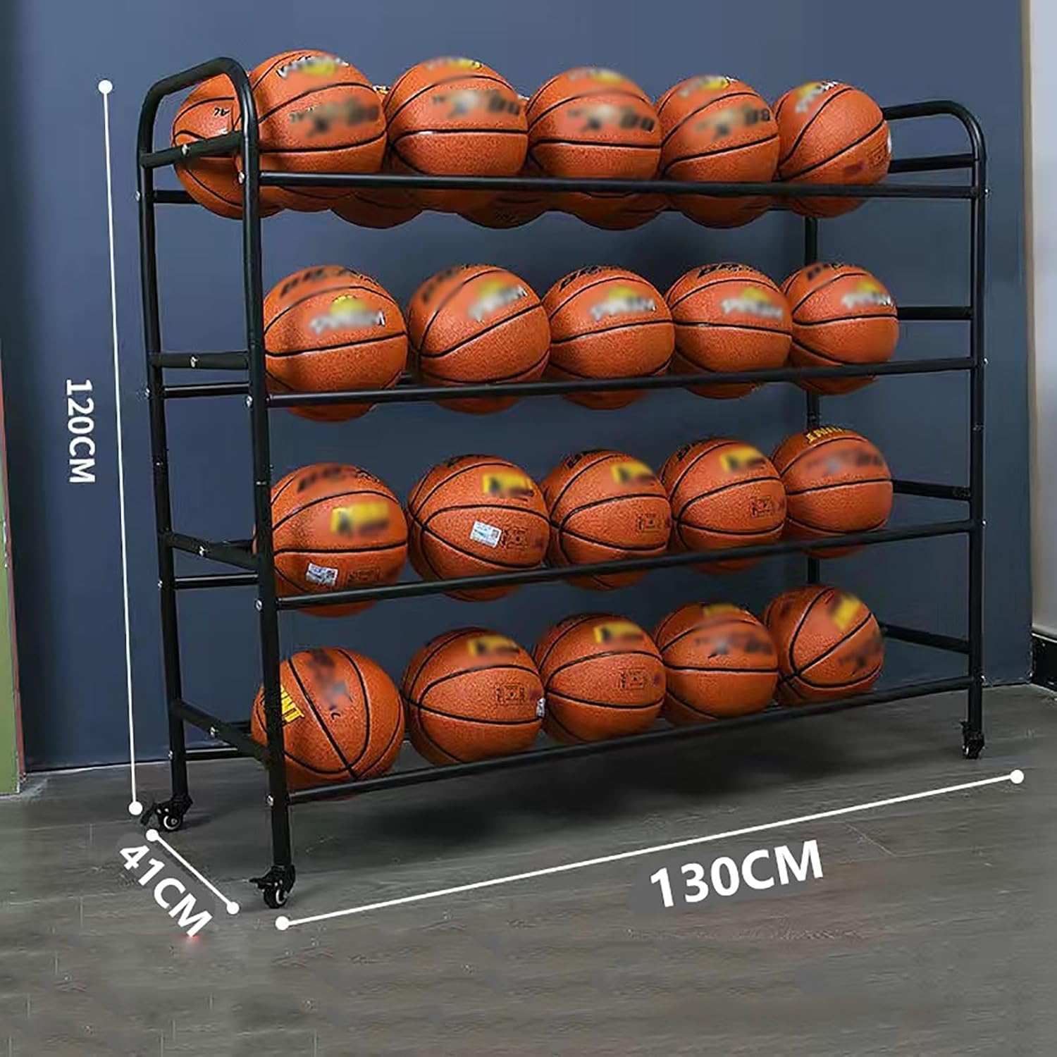 Heavy Duty Exercise Ball Pilates Balls Storage Organizer:The removable basketball stand is designed with your convenience in mind, featuring wheels for effortless transport. Whether you're setting up for practice in your backyard or moving it to the garage for storage, this stand adapts to your needs with ease. Perfect for basketball enthusiasts, this versatile stand is suitable for various settings, including schools, training grounds, and home use. It can also double as a storage solution for basketballs, soccer balls, volleyballs, and more, making it an essential item for clubs and teams alike. **Product Specifications:** - **Product Name:** Basketball Ball Storage Stand - **Material:** Durable Metal - **Color:** Sleek Black - **Assembly Required:** Yes - **Dimensions:** 130CM × 41CM × 120CM **Package Includes:** - Basketball hoop with wheels × 1 **Usage Tips:** - For optimal performance, ensure that all screws are securely tightened before use. If you notice any loosening during gameplay, simply re-tighten the nuts to maintain stability. - Please be aware that slight variations in size (1-2cm) may occur due to manual measurements. Additionally, color discrepancies can arise from different monitor settings and lighting conditions. Invest in this multifunctional basketball storage stand to keep your equipment organized and accessible, enhancing your training experience and making it easier to enjoy the game you love.