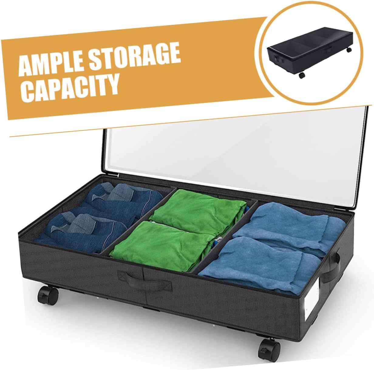 Package Include 1 x Under Bed Storage Bag Features -Effortless mobility: easily move and retrieve items with the sliding wheels containers for organizing under bed. -Color:Black -Material:ABS, oxford cloth, iron -Product Info:Under-bed storage truck -Size:80.00X42.00X16.00cm/31.44X16.51X6.29in - This storage bag with wheel is great for storage, moving, shipping, laundry and much more wheel design Storage Bag. - You can easily identify the items inside through the transparent PVC window and quickly remove the lid to remove them storage under bed. - The zipper storage bin is specially designed for the storage of clothes, quilt, blanket, bedding, etc under bed storage container. - The under bag organizer bag is made with fine workmanship, to ensure the practicality and durability under bed storage bag.Goods Descriptioncontainers for organizing under bed It can be easy and convenient for you to carry or grab the handles on the bag and pull the bed.under-bed storage This storage bag is made of ABS, oxford cloth, iron material, which is and safe, and it keeps your things organized, such as quilt, clothing, blanket, etc