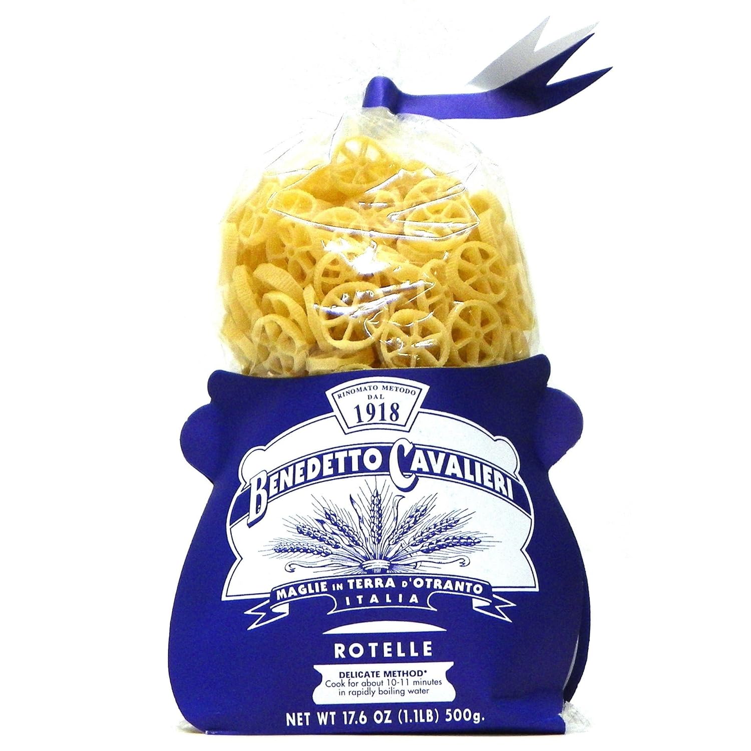 Benedetto Cavalieri Maccheroni comes in 17.6 ounce pack. The hard durum wheat or semolina used to make Benedetto Cavalieri pasta is higher in protein than softer bread flour. In addition, the traditional delicate method of slow drying at low temperatures helps preserve the nutritional value of the wheat, including wheat protein. Benedetto Cavalieri is one of the leading family owned companies that produce pasta by old-world artisanal methods. Founded in 1918, Benedetto Calvalieri continues the family tradition of making pasta according to the time-honored delicate method. Using only the highest-quality, freshly milled hard durum wheat, the process involves long kneading by experienced hands. Every shape of pasta requires a unique blend of semolina flour and water. Secondly, the dough slowly passes through special bronze dies designed to create each shape and give the pasta a rough-textured surface to which sauce clings rather than slipping off. Lastly, after shaping, the pasta is allowed to dry in antique ovens and rest at low temperatures. Slow drying at low temperatures retains more of the nutty flavor and aroma of durum wheat.