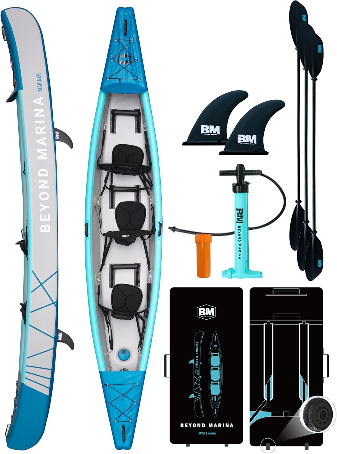 BEYOND MARINA Inflatable Kayak 1 & 2 & 3 Person Adult- Full Drop Stitch Kayak with Aluminum Paddles, Seats, Footrests, Pump, Fins
