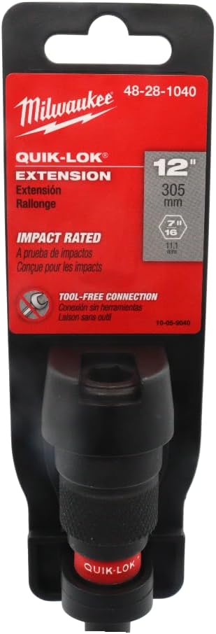 Product Description Bit Extension, Shank Size 7/16 In., Shank Shape Hex, Fits Hole Saw Dia. 9/16 In. to 6-7/8 In., Overall Length 12 In., For Use With Any 7/16 In. Hex Shank Product, Includes (1) 7/16 In. x 12 In. Bit Extension From the Manufacturer The 7/16in. Universal Quik-Lok Extension has an innovative design that fits all 7/16in. shanks - with or without a power-groove. The uniques design requires no tools to change out bits, making it fast and effcient. These new extensions are impact rated for maximum durability.