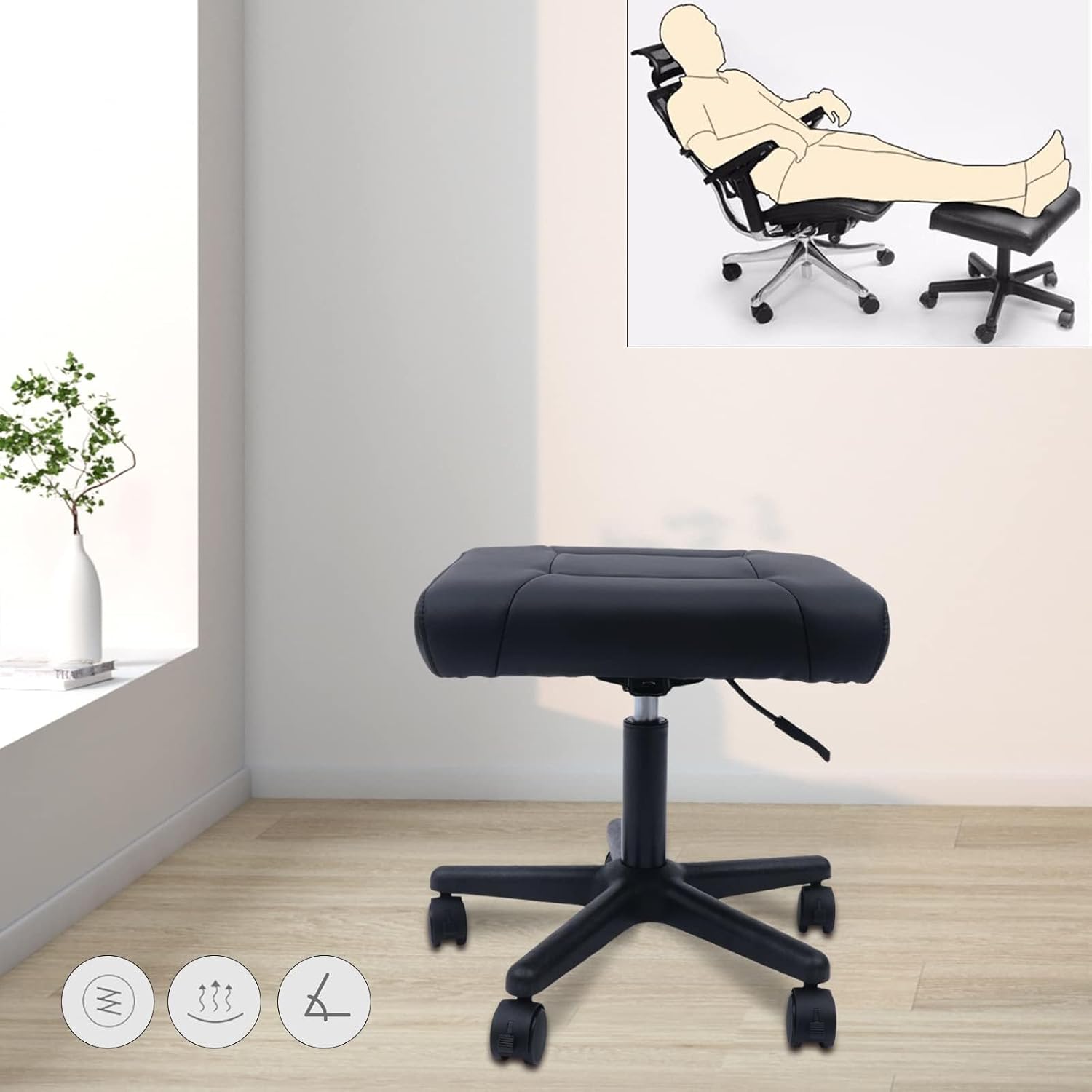 Application It is widely used to support feet at home, office, massage parlors, beauty salons, and other places, as well as an additional stool in your living room, bedroom, study room, etc. Specifications Material: Nylon, Steel, Artificial Leather, Sponge Color: Black Style: Modern Shape: Rectangular Rotatable Angle: 360° Number of Wheels: 5(All with Brakes) Load-bearing Capacity: Approx. 100kg/220.46lbs Adjustable Height: Up and Down 6cm/2.36in Base Diameter: 55cm/21.65in Top Cushion Size: 42*33cm/16.54*12.99in Product Height: 40-51cm/15.75-20in Packaging Size: 49*16*47cm/19.29*6.3*18.5in Gross Weight: 4.7kg/10.36lbs Net Weight: 4.1kg/9.04lbs Package Included 1*Footstool
