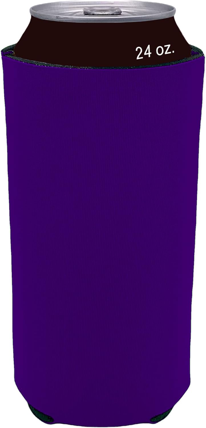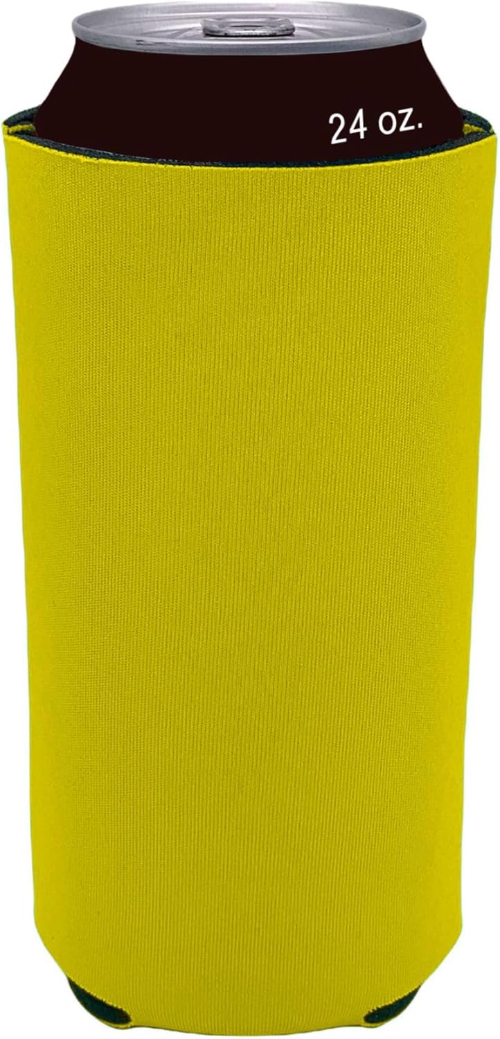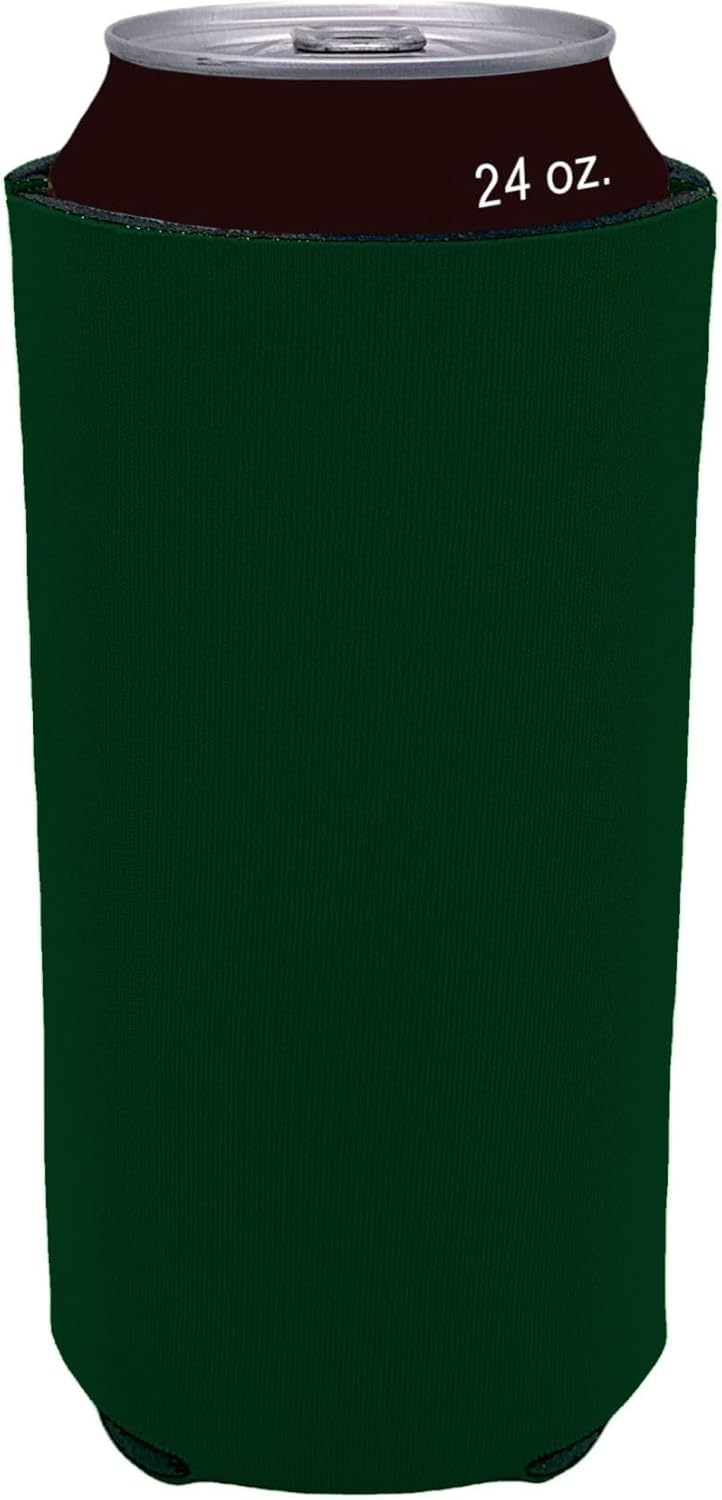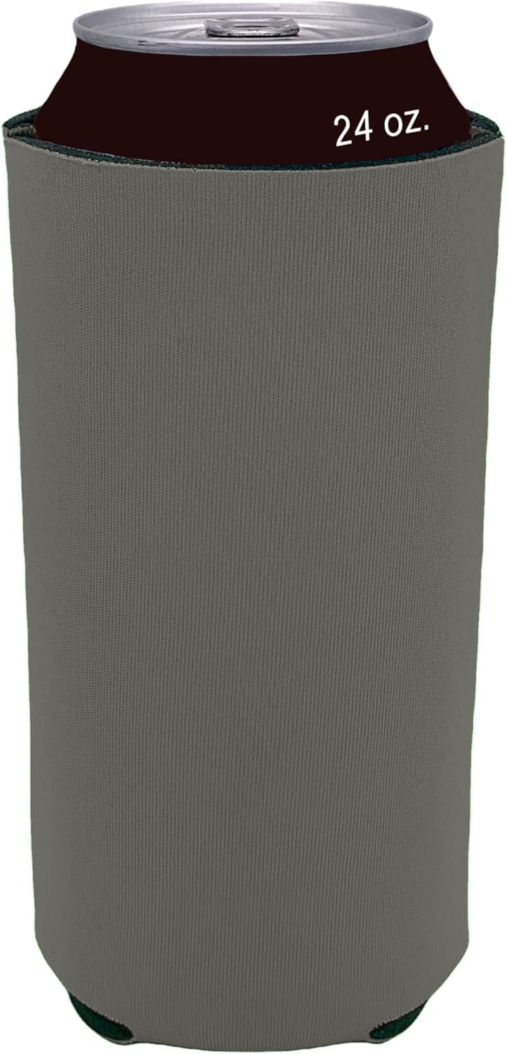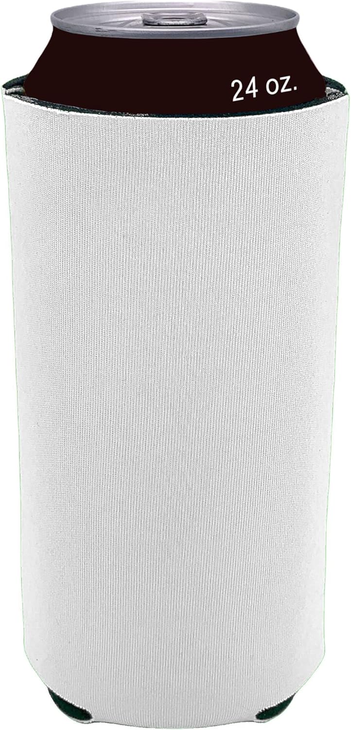 Manufactured in the USA. Polyurethane foam (sponge) material (1/8" thickness). Collapsible bottom, folds flat for storage. Seams on both sides (2 seams). Built to fit 24 ounce and 25 ounce cans. Keeps drinks colder for longer and hands dry. Helps prevent surface damage by limiting condensation. Use or decorate with DTF, heat transfer vinyl, screen print or sublimation.