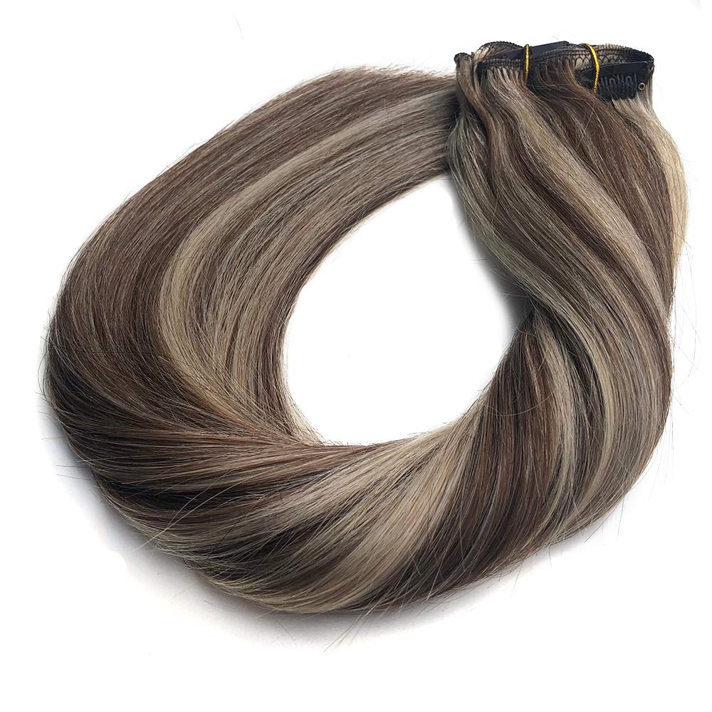 Product description: Clip Hair extensions are some of the best ways to get the kind of hair that you have always wanted. so easy to wear, won't damage your own hair.And it's available in supper wide range of colors and lengths This series clip in hair extension is for adding volume and add length. Usually one package is enough for a perfect effect. But if you have thin hair, we recommend you to buy two packages for a prefect full head Because clip in extensions are easy to put on and off by yourself,So all these could be done in anywhere at anytime,Change your hair color, try out the ombre/highlights trend Details of hair: Hair Material: 100% Remy Human Hair Color:#27/613( Golden Brown /Bleach Blonde) Texture:Silky straight Length :14”,16”,18”,20” Weight :120g/set Piece: 7Pcs/pack Hair Life:6 To 12 Months(depending on care & use) Kindly Remind: There maybe a little color difference due to different monitors, please take the product picture not model picture as the reference standard when ordering. How to care for your clip in hair? 1,Because hair are not a natural part of your head, they are not nourished properly as compared to normal hair. Therefore, it is best to wash every two to three weeks. This will prevent your haircutter from drying up too quickly 2,Before you start shampooing, soak your hair in warm water for 15 minutes. So you can adequately remove all the dirt and grime from it quickly and without much effort. Make sure that your hair is free of tangles . If so, you can use a wide-toothed comb or Dettangle to knot it 3, Don't Wash the Extensions as much as our natural hair. When washing your hair, please use mild shampoo without alkaline component to wash the extensions We believe you will be more beautiful and amazing after wearing this blonde highlights human hair clip in hair extensions!