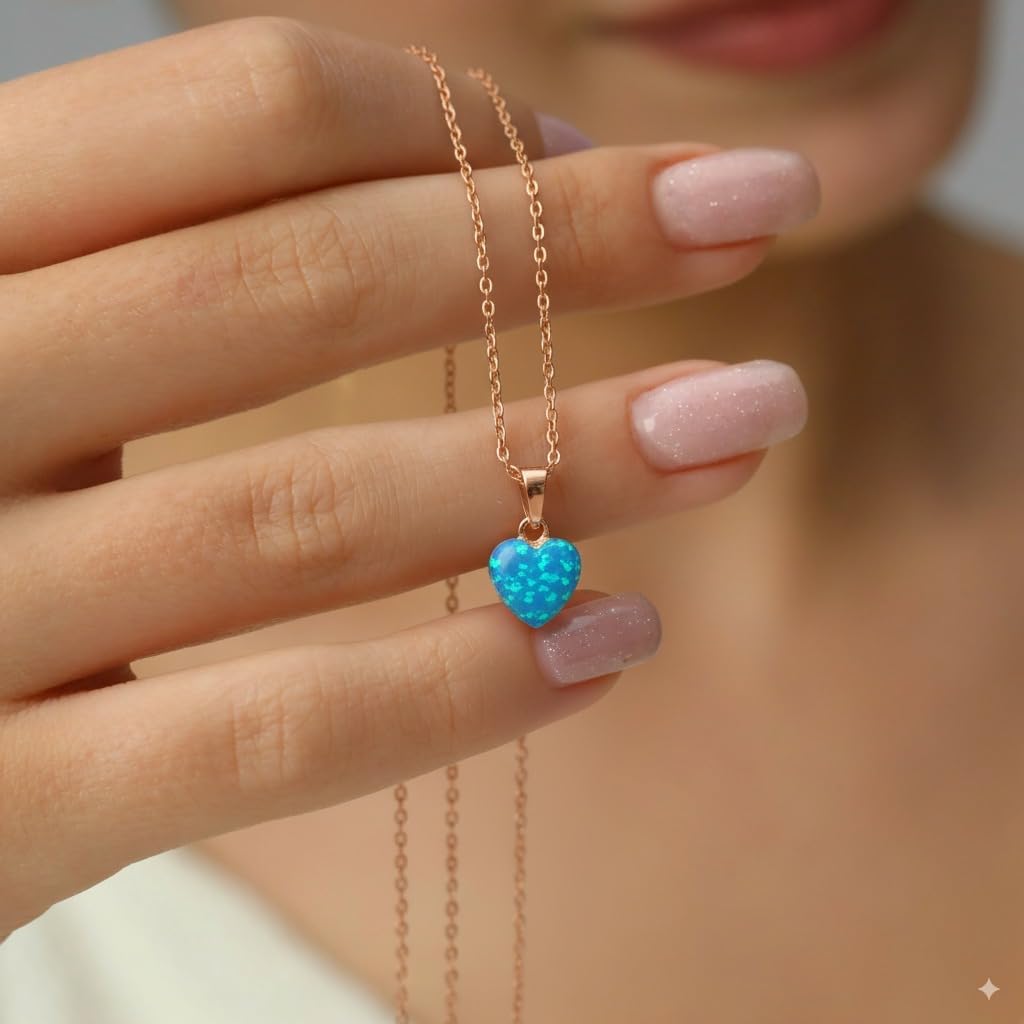 Celebrate love and elegance with the Blue Opal Heart Charm Necklace, featuring a luminous heart-shaped blue opal set on a luxurious rose gold chain. Handcrafted with fine attention to detail, this romantic necklace is designed as a meaningful gift for lovers and special occasions. The stunning opal centerpiece glows with captivating hues, symbolizing affection and emotional connection, while the rose gold chain adds a touch of modern sophistication. Perfect for anniversaries, birthdays, or to show someone special how much they mean, this necklace is a timeless piece that combines artistry and heartfelt sentiment. Showcased in premium packaging, it’s ready to delight every jewelry lover seeking a handcrafted treasure to cherish.