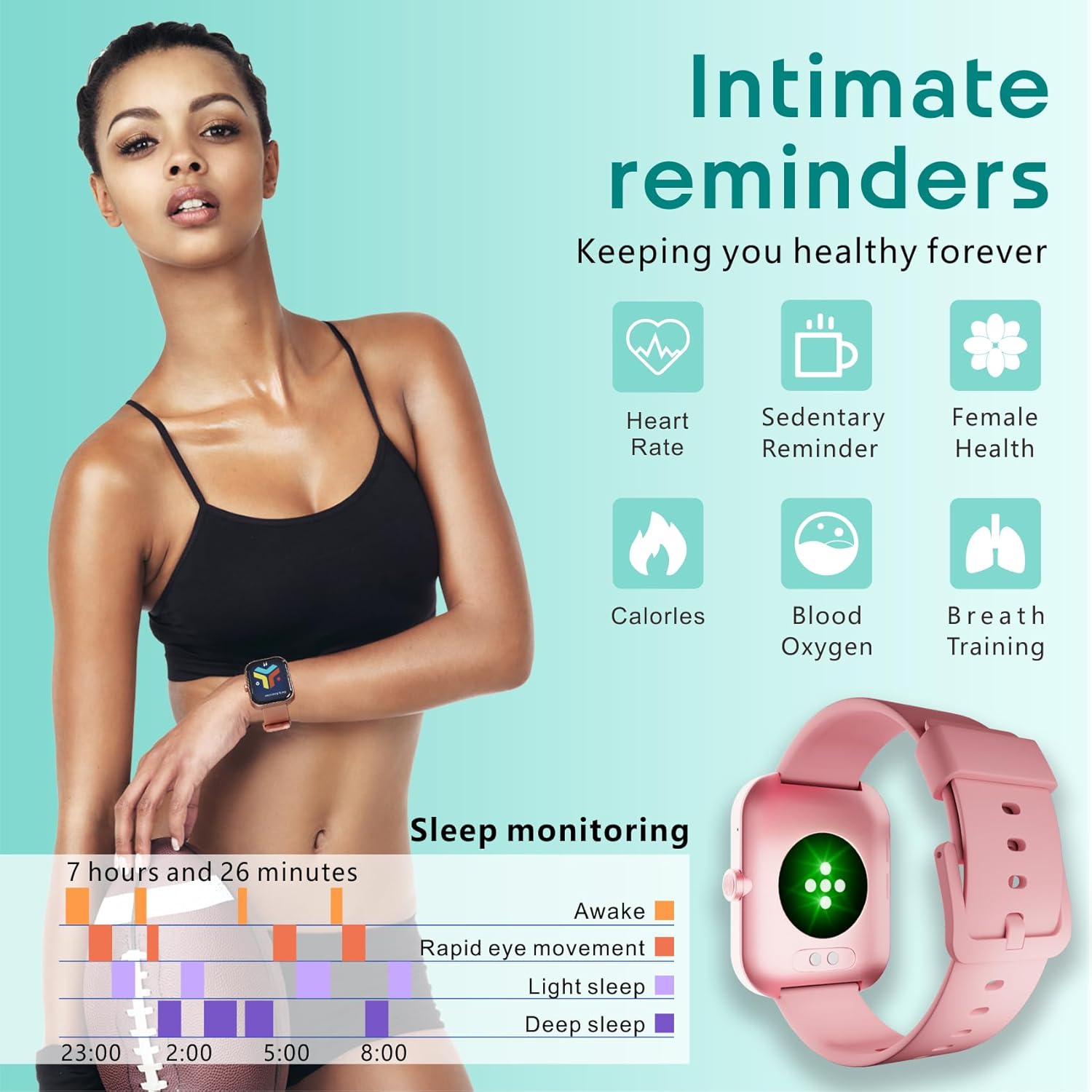 BLUELOVER Smart sports watch,voice Make Answer Calls ,Instant message notifications so you don't miss anything important. Support IOS 9.0 + Android 5.0 +. 113+ sport modes to keep you fit,200 online watch faces, also with your photo as a watch face. Blood oxygen monitoring, Automatically measure the current blood oxygen data and vibrate to indicate the result. 24-hour heart rate tracking,Automatically measure the current real-time dynamic heart rate, view data records. Sleep Butler,Record your daily sleep and tell you how much you sleep deeply, lightly and awakely. The voice assistant feature gives you more freedom.Alarm clock reminders so you don't miss anything important,(Calculator function) to make the calculation easier. 2 hours full charge, 20 days standby time, 5-7 days of normal use.