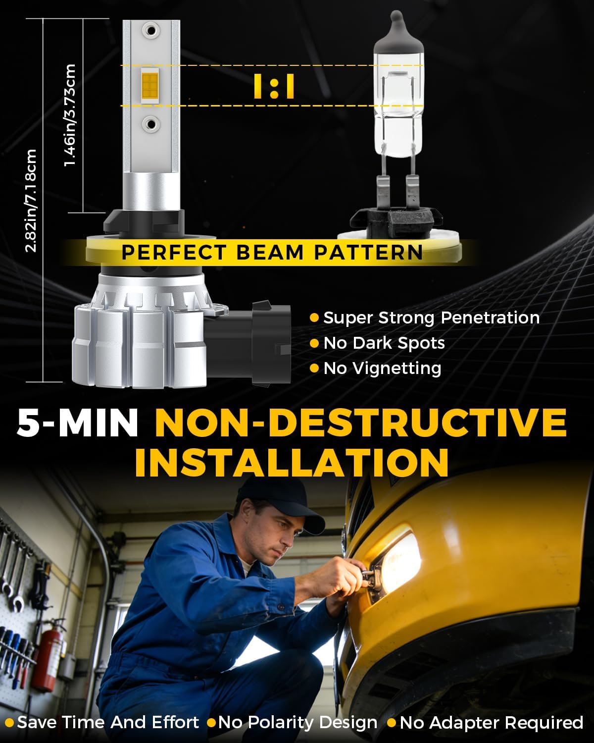 Power: 40W/pair Operating Voltage : DC11-18V IP Rate : IP67 Waterproof Light Source Model : GC5530 CSP Color Temperature : 3000K Amber Yellow Operating Life: >30,000hrs Operating Temperature: -77°C~+185°C Application: Fog Lights/Daytime Running Lights