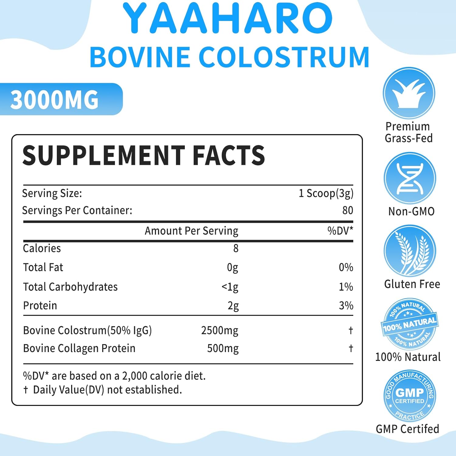 • ๐Ÿ‚2500mg BOVINE COLOSTRUM SUPPLEMNET:Full of essential vitamins, minerals, enzymes and amino acids,our colostrum powder is the best choice for adults seeking to support gut health, immune function, and overall wellness.Add 1 scoop (3 g) to 6-8 oz of water, smoothie, or any cool beverage. For children ages 1-10 years, take half of scoop (1.5 g)