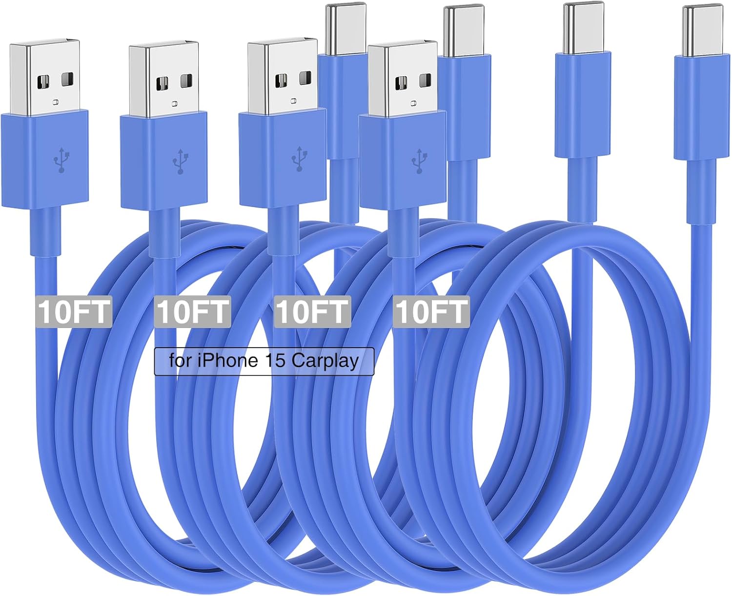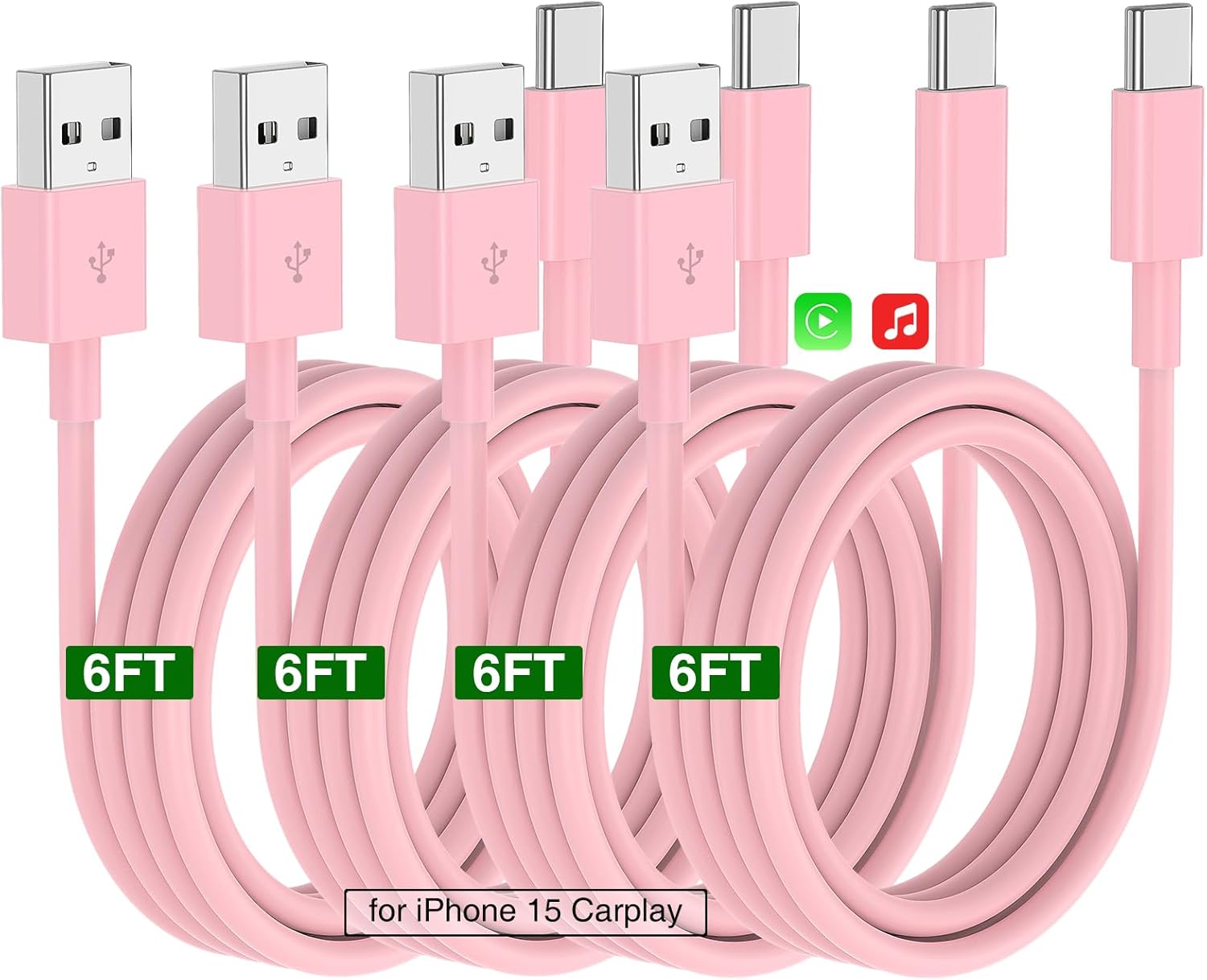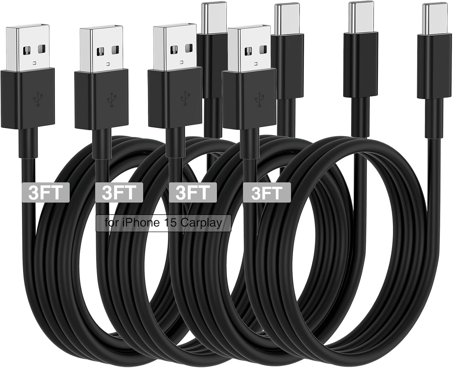 4 Pack Apple Carplay Cable for iPhone 15 15 Pro Max Car Charger,Apple USB A to USB C Cable 3/3/6/6ft for Car Charger Adapter,Carplay USB C Cord Fast Charging for iPhone 15 Pro/Plus,iPad Pro-Black