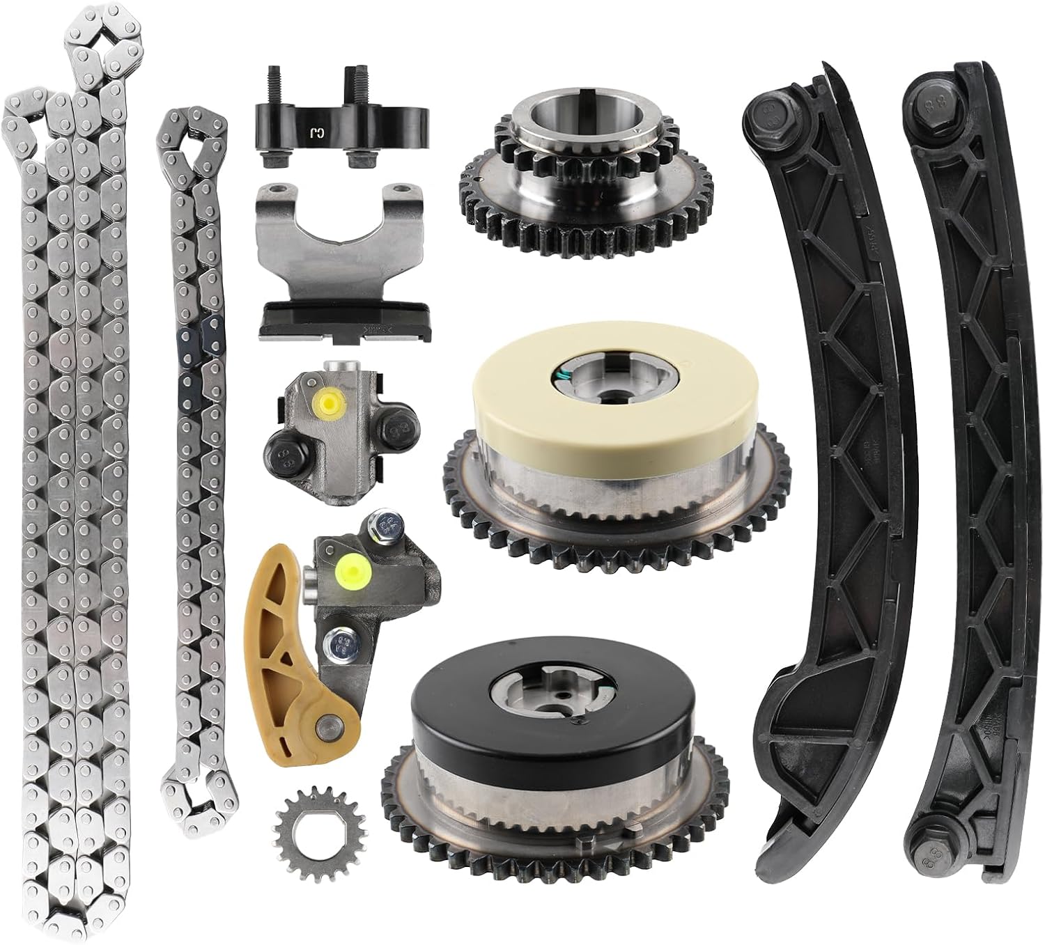 Compatible with: VVT sprocket timing chain kit compatible with GMC ACADIA 2.5L 2457CC 153CID L4 DOHC 2017 VVT sprocket timing chain kit compatible with GMC CANYON 2.5L 2457CC 153CID L4 DOHC 2015-2017 VVT sprocket timing chain kit compatible with Buick Regal L4 122 2.0L (1998cc); Engine Desg. LTG 2014-2017 VVT sprocket timing chain kit compatible with Cadillac ATS L4 122 2.0L (1998cc); Engine Desg. LTG 2013-2019 VVT sprocket timing chain kit compatible with Cadillac CTS L4 122 2.0L (1998cc); Engine Desg. LTG 2014-2019 VVT sprocket timing chain kit compatible with Cadillac CT6 L4 122 2.0L (1998cc); Engine Desg. LTG 2016-2018 VVT sprocket timing chain kit compatible with GMC Terrain L4 122 2.0L (1998cc); Engine Desg. LTG 2018-2020 VVT sprocket timing chain kit compatible with Buick Envision L4 122 2.0L (1998cc); Engine Desg. LTG 2016-2020 VVT sprocket timing chain kit compatible with Chevrolet Malibu L4 122 2.0L (1998cc); Engine Desg. LTG 2014-2021 VVT sprocket timing chain kit compatible with Buick Regal TourX L4 122 2.0L (1998cc); Engine Desg. LTG 2018-2020 VVT sprocket timing chain kit compatible with Chevrolet Equinox L4 122 2.0L (1998cc); Engine Desg. LTG 2018-2020 VVT sprocket timing chain kit compatible with Chevrolet Camaro L4 122 2.0L (1998cc); Engine Desg. LTG 2016-2021 VVT sprocket timing chain kit compatible with Chevrolet Traverse L4 122 2.0L (1998cc); Engine Desg. LTG 2018-2019 VVT sprocket timing chain kit compatible with Buick Regal Sportback L4 122 2.0L (1998cc); Engine Desg. LTG 2018-2020 Replace Part Number: VVT633 916938 VVT621 916635 916-938 916-635 12627107 12627109 12627184 12627111 12627112 12627108 12626983 12655471 12626984 12655716 12638661 25203207 25203205 Package Including: As shown in the picture Note: Easy to install, just buy the right model