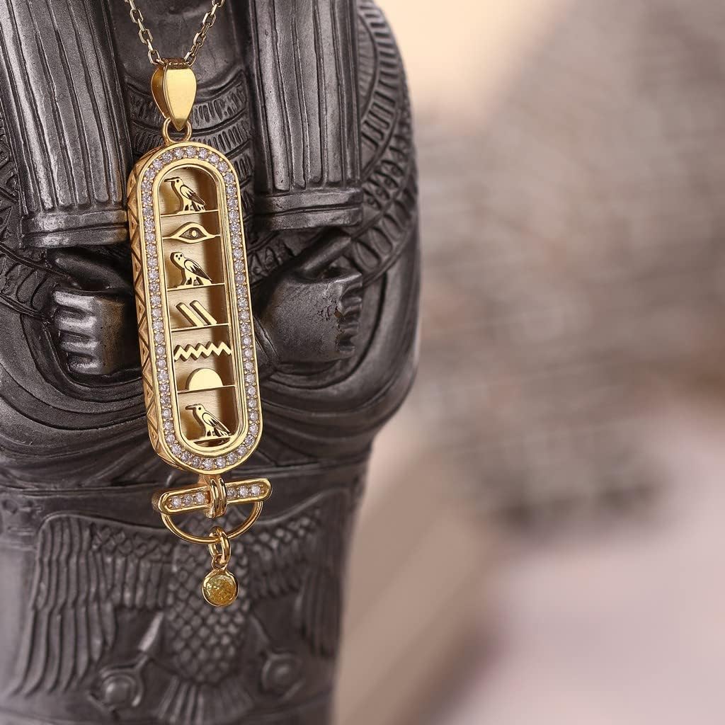 Elevate your jewelry collection with this exquisite Cartouche Personalized Name Necklace by HStudio, crafted from genuine 14k gold. This handmade pendant features authentic Egyptian hieroglyphics encased within the cartouche design, beautifully blending cultural heritage with personalized charm. The necklace is carefully crafted to order, allowing you to customize it with your name or that of someone special, making it a meaningful keepsake. Measuring approximately 1 inch in length, this delicate yet striking pendant hangs gracefully on a matching 14k gold chain that complements any outfit from casual daywear to elegant evening attire. Ideal for everyday wear, it serves as a unique symbol of identity and style. The 14k gold ensures durability and a luxurious finish, resisting tarnish with proper care.