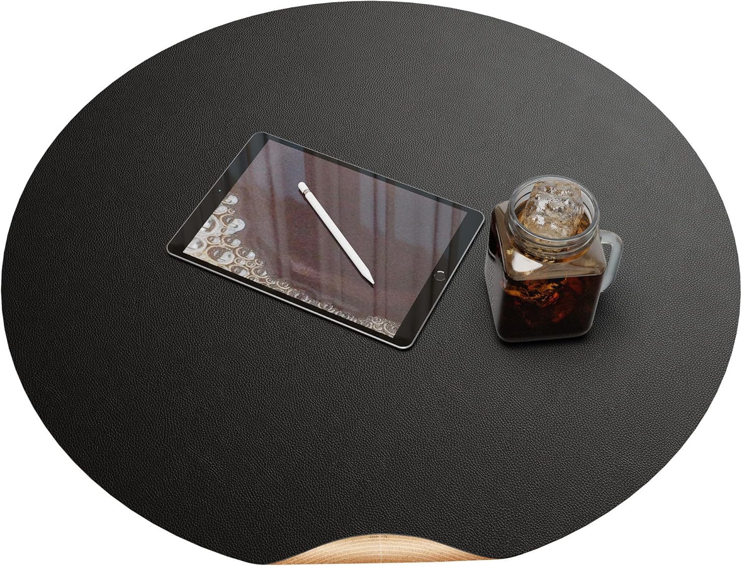 CENNBIE 54/51/47/43/40 Inches Round Table Mat - Cork Leather Table Pad - Suitable as Side Dining Coffee Table Cover Protector - Can Be Cut to Fit (Black)