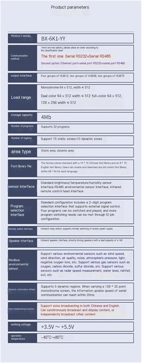 Character library card BX-6K1-YY voice broadcast secondary development control card serial port network port card LED display