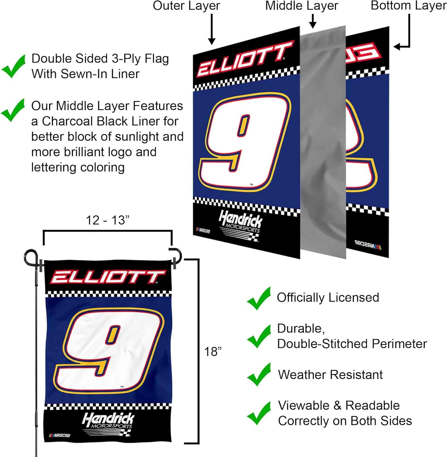 Ideal for your garden or home entrance is our Flag, Banner or Pennant. This double sided driver approved garden banner flag measures a large 12.5 in x 18 in, has a Double Stitched border, a 1.5 inch top sleeve, and is made of 2 ply Polyester with liner so the logos are Viewable and Readable Correctly on Both Sides. The Screen Printed team logos are Officially Licensed and Approved by the Association and Driver Approved. (Flag Only, Accessories Sold Separately)
