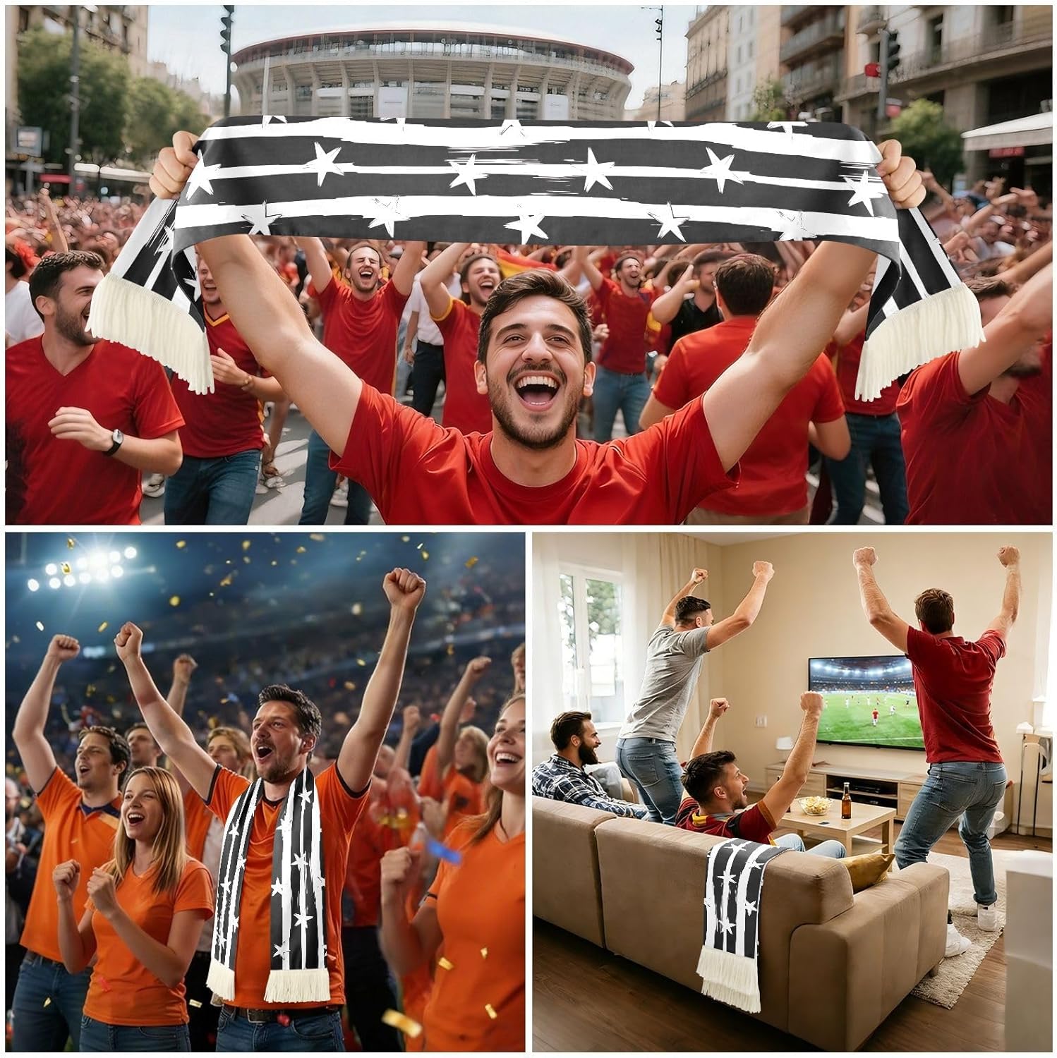 Cheer for your team in comfort and style with this sports fan scarf made from soft, brushed polyester. Fine craftsmanship and a vibrant, lasting print make it ideal for every football or soccer event, while its absorbent quick-dry material ensures you stay fresh even during intense matches. The versatile dual-color design and classic fringed edges complement a variety of fan gear, and the scarf is lightweight enough for year-round support.Ideal for lively stadium moments, fan gatherings, or as a spirited gift for birthdays, holidays, or special occasions.Custom slogans can be added for unique team events or group celebrations, making it a memorable keepsake for friends and supporters. Care is simple with wash instructions that fit into any routine. Show your energy and make your voice heard on and off the field with this practical, stylish accessory.