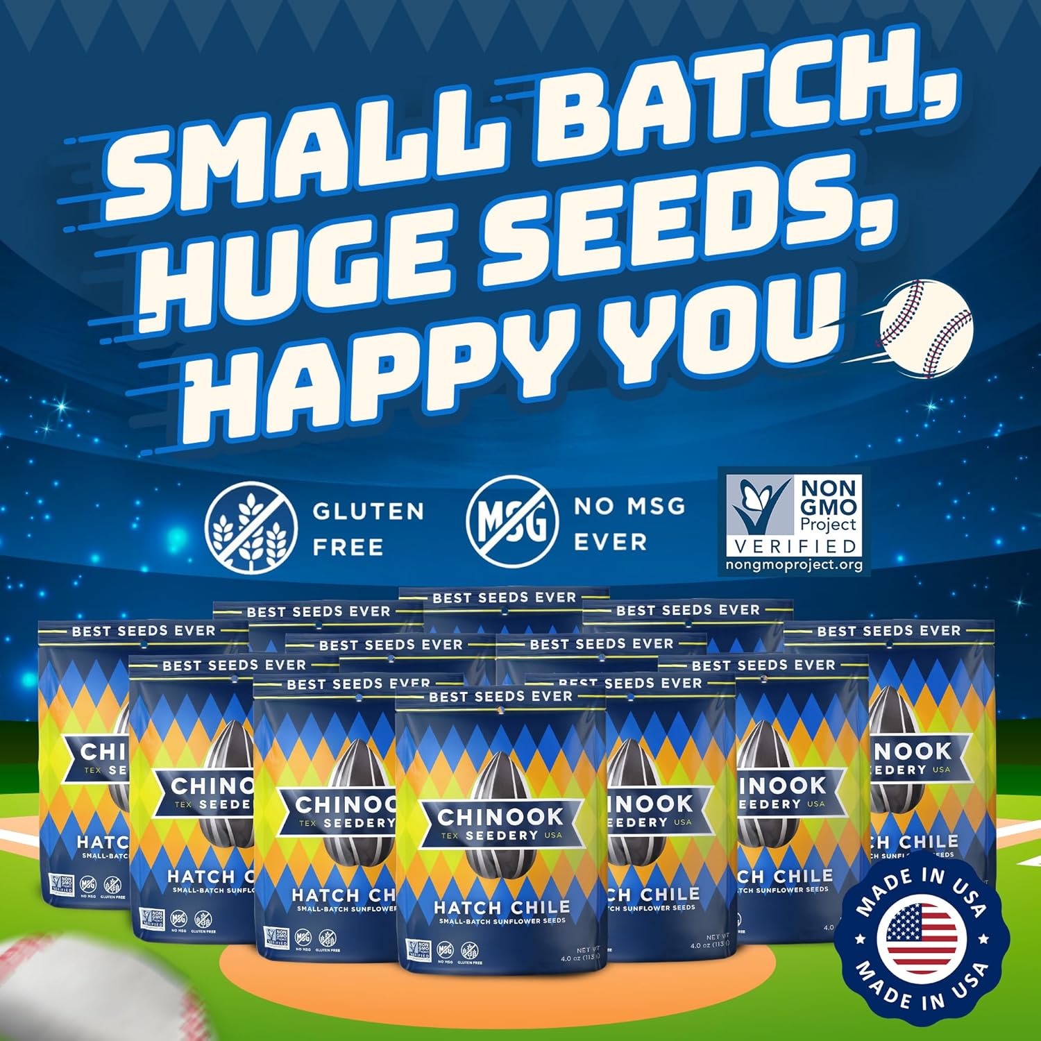 | Item Type Name | Chinook Seedery Roasted Jumbo Sunflower Seeds - Keto Snacks, Gluten-Free, Non-GMO, Hatch Chile Flavor 4 oz (12-Pack) |