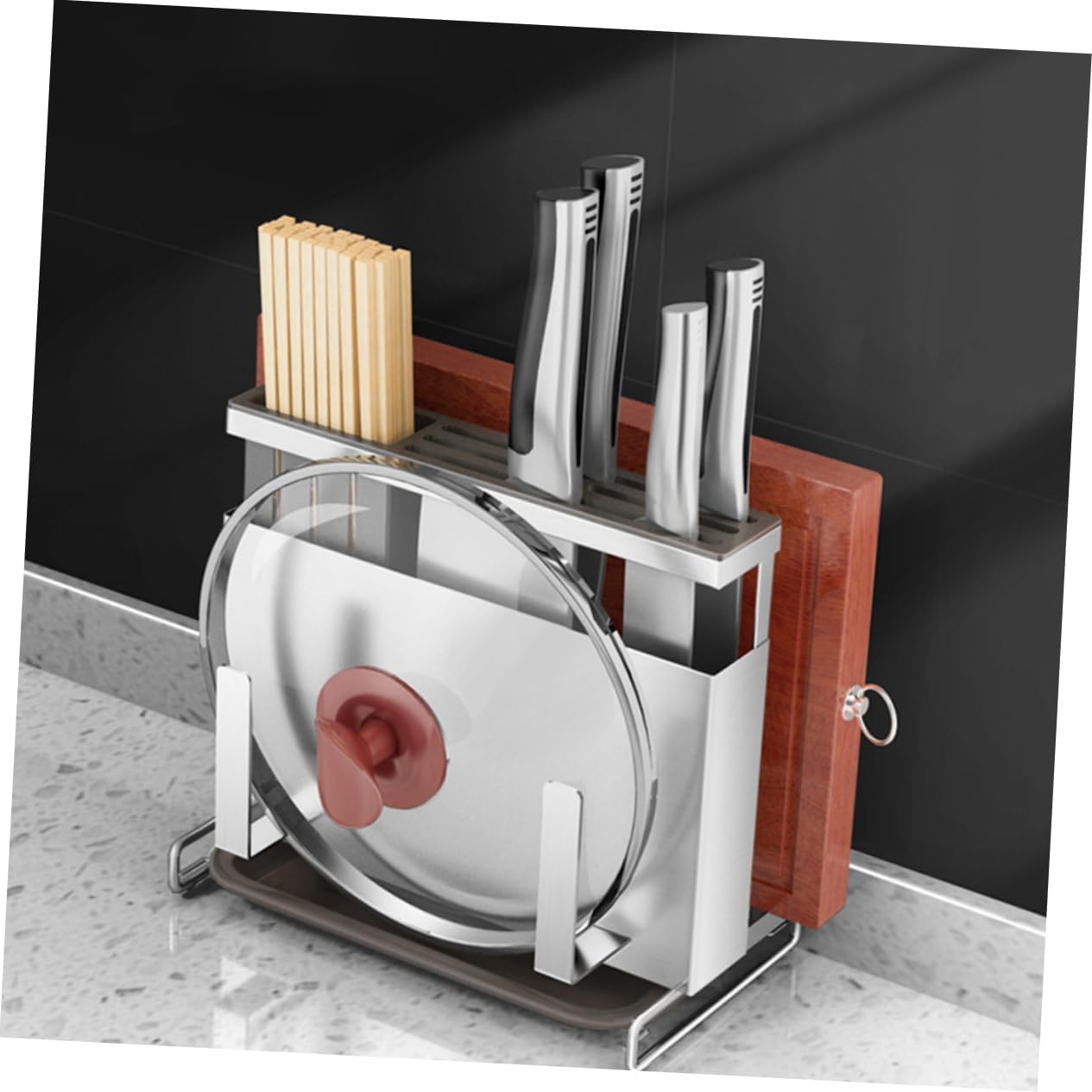 Package Include 1 x storage rack Characteristics -Size: About 25.00X13.80X23.00cm/9.82X5.42X9.04inch Cutting Tool Holder -Material: stainless steel Pot Cover Rack -Color:Silver Kitchen Supplies - Help keep counter surfaces clean and save space Knifes Storage Rack. - With fine workmanship, not easy to wear and tear, very in use Knifes Holder. - Multi-functional design, knifes and chopstick cage chopping block and pot cover set in one, more convenient to use Cutter Rack. - Made of materials, and for a long time use Knifes Rack. - Easy to clean, dry and store, for long time use Knifes Block.Goods InformationCutter Shelf We adopt -end , can keep it for a long time.Stainless Steel Storage would be a nice kitchen helper for you.Cutting Tool Holder It can also be used to store chopsticks and pot lid.Stainless Steel Rack If you are looking for a multifunctional holder with reliable and reasonable , I will tell you that our holder will be