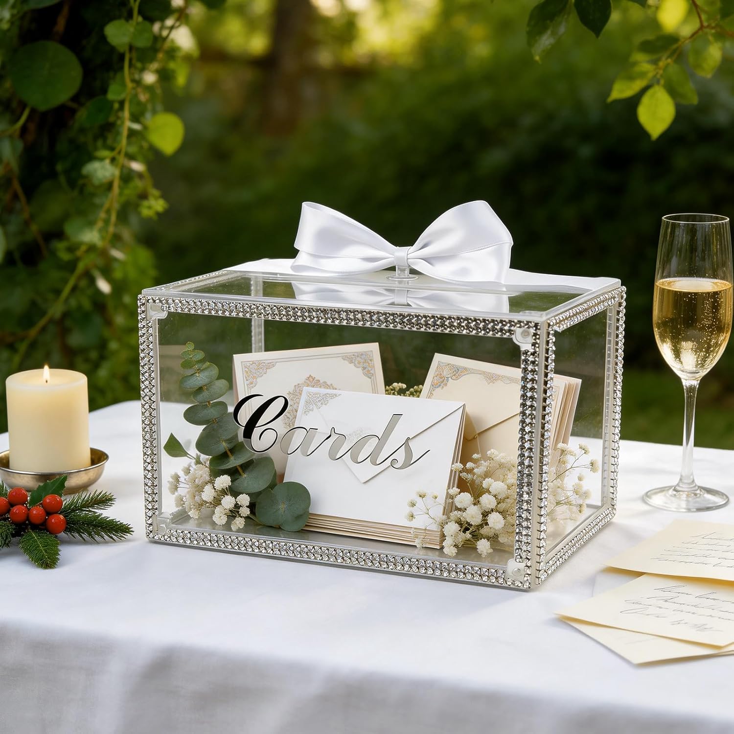 Clear Acrylic Wedding Card Box With Faux Diamonds