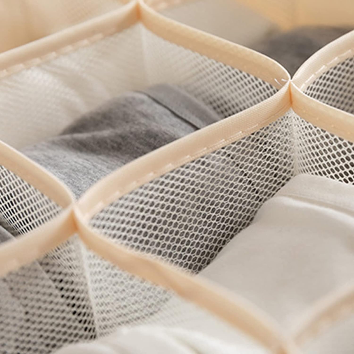 🌿Clean and tidy!! Space saving!! Washable!! Individual storage boxes allow you to organize your clothes by size or type, and they are compatible with any size drawers, take drawer organization to a new level, let your drawers look clean and neat. Not just for clothing, you can also use them for random storage.Super easy to re-use and clean, you’ve finally got the simplest and cheapest solution to every clutter crisis!The mesh ventilation design is hygienic and clean, effectively reducing the odor of clothes and keeping the clothes fresh. Thickened non-woven material, strong and not deformed.Easily accessible to see the pattern and color to choose quicky the right combination for your work day.The visible Wardrobe Clothes Organizer can use as drawer dividers, on shelves, or in closets. Enjoy the peace of mind only tidiness brings!🌿Product Details:Weight:500(g)/1.1(lbs)Material:NylonColor:YellowWashing method:Hand wash/machine washSize: bra,panties,sockPlease refer to the size chart, 1cm≈0.39inch7 compartments:32*32*10cm/12.6*12.6*3.9in16 compartments:32*32*10cm/12.6*12.6*3.9in24 compartments:32*32*10cm/12.6*12.6*3.9in🌿Package Including:3*Closet organizer(7/16/24)🌿Note:The products are all manually measured, there are small gaps, please refer to the actual product.