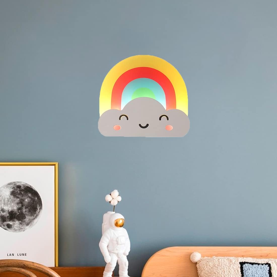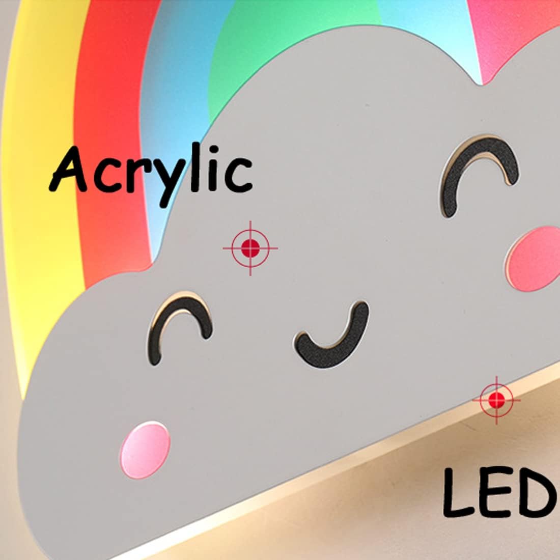 Rainbow and Clouds Children's Wall LampWhen Used for Daily Activities, It is Recommended to Use Clear and Bright White Light.When Used As Bedroom Lighting, It is Recommended to Use a Clear and Bright Neutral Light.When Used As Bedtime Lighting, It is Recommended to Use Warm Light, Warm and Romantic Atmosphere.Parameter:Style: Modern Children Wall LightProduct Shape: RainbowMaterial: Metal + AcrylicLed Power: 10WColor Temperature: Warm White 3000K; Neutral White 4000K; Cool White 6000KMain Color: ColorfulSize: 28Cm * 25Cm * 10CmVoltage: 110-240VLed Life: 50,000 HoursUsage Range: Bedroom, Living Room, Study, Office, Bedside Table, Princess Room, Children's Room, Hotel, Villa, Club House.