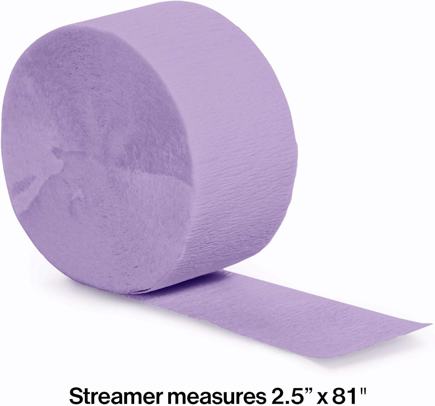 The products in the Wholesale Department are offered in Case ONLY. The Case ONLY price is at a BIG bulk discount. Luscious Lavender Crepe 81ft Roll CASE (4 kits) Luscious Lavender color crepe paper for the decoration of ceilings or the sides of party tables. Roll measures 1.75in x 81ft 12 rolls Item 078280