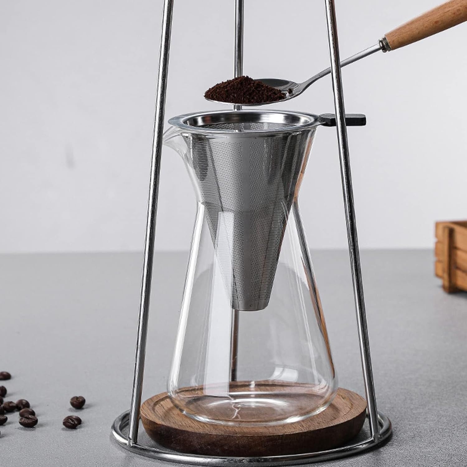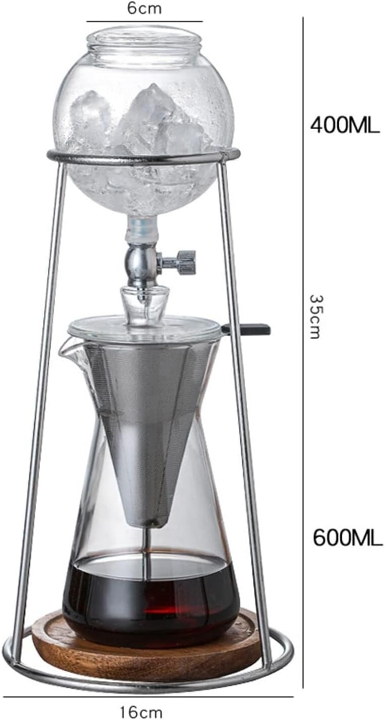 Iced coffee is soaked in ice water at low temperature, avoiding the brewing of hot water to make the coffee smelly.The coffee extracted from iced coffee is rich in flavor and smooth and not sour. Lower low caffeine is also more healthy for our body.Specifications:Product name: Ice drip coffee potMaterial: Glass, Stainless steelCapacity: 600mlSize: 16*35cm/6.3*13.8 inchUse scenarios: family, kitchen, living room, coffee shop, restaurant, partyPackage list:1X Cold Brew Coffee Tower