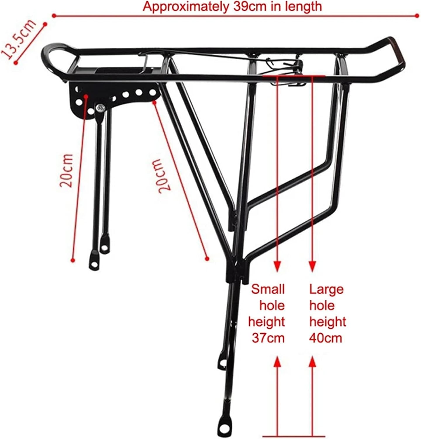 Color: BlackLoad Capacity: 250KgSize: As pictureSuitable for 26inch bicyclesNote:1. The color of the item may be slightly different from the pictures shown on website caused by many factors such as brightness of your monitor and light brightness. Please refer to the actual product received.2. Please allow slight manual measurement deviation for the data.Package Includes:1 set * Bicycle Rear Cargo Rack==========High-concerned chemical : None