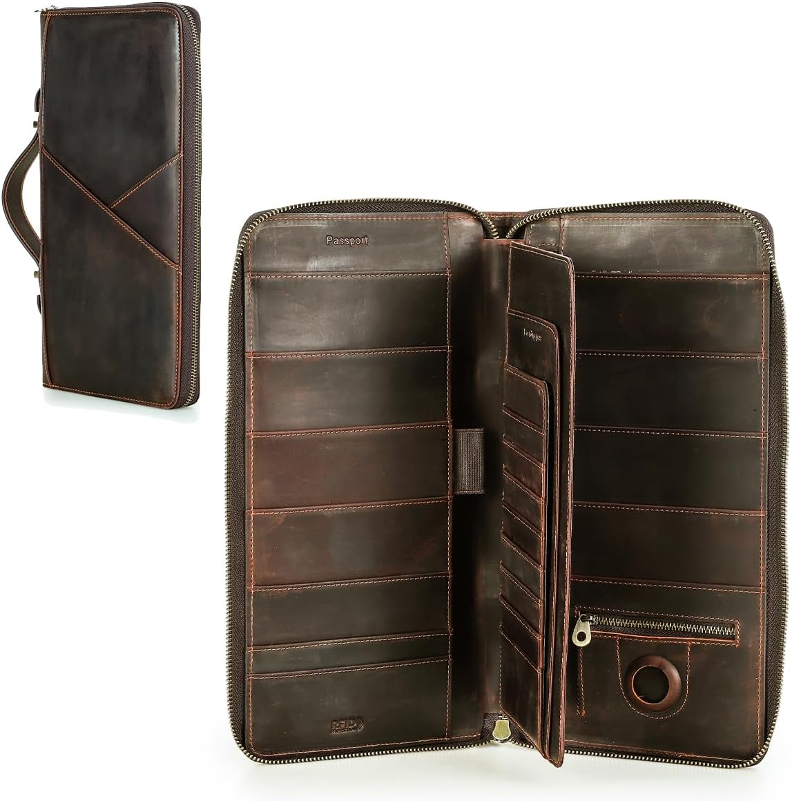 | Additional Features | 10 Passport Slots, Airtag Slot, RFID Protected |