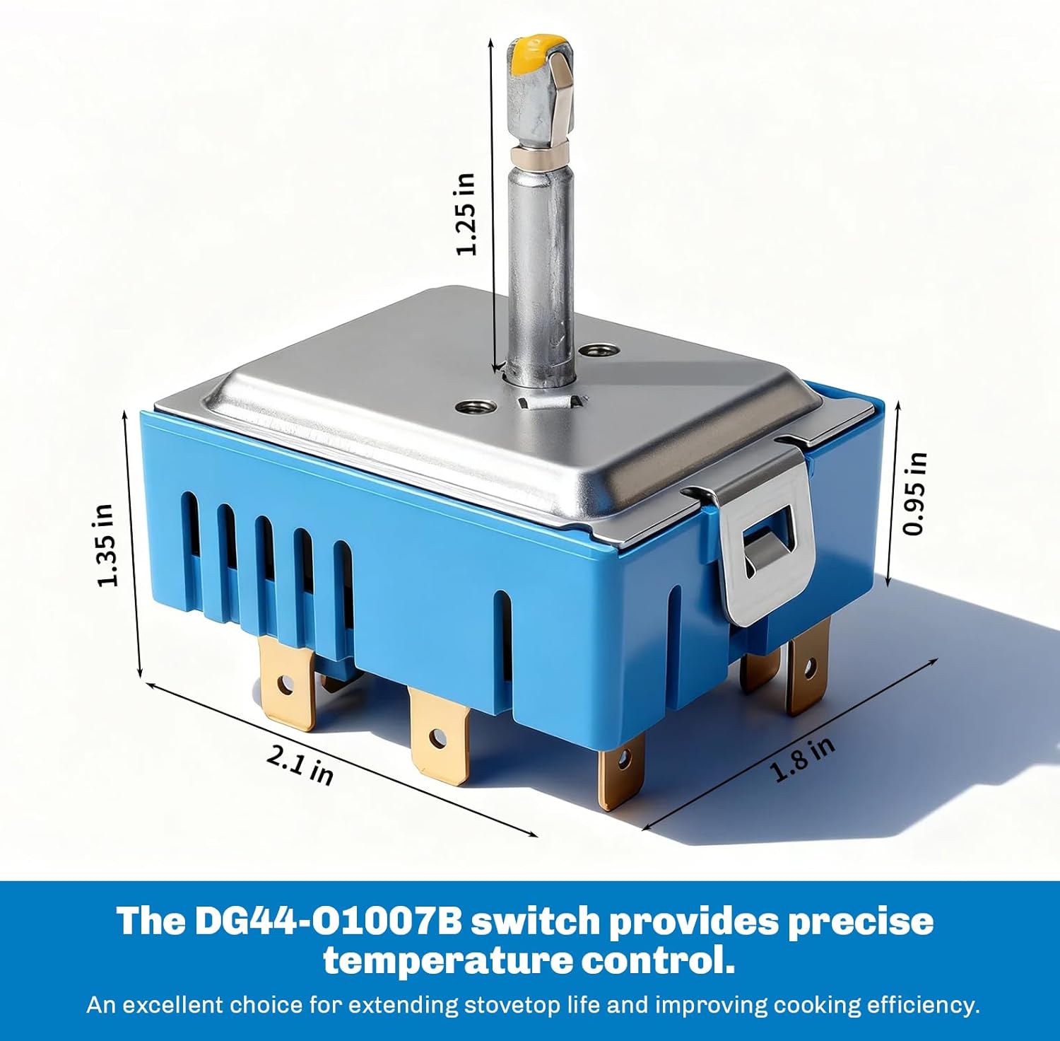 The DG44-01007B three-burner stove switch is made of high-quality materials to ensure reliable switching functionality. It can effectively replace damaged or worn-out control switches, restoring the stove to normal operation. The DG44-01007B three-burner stove switch is a replacement for the DG44-01007A switch, and its original part numbers are PER001-03T and PER001-13T. It is compatible with Samsung Infinity Series stoves, such as the Samsung NE59J7630SS, NE58K9850WS, and NE59R6631ST models.