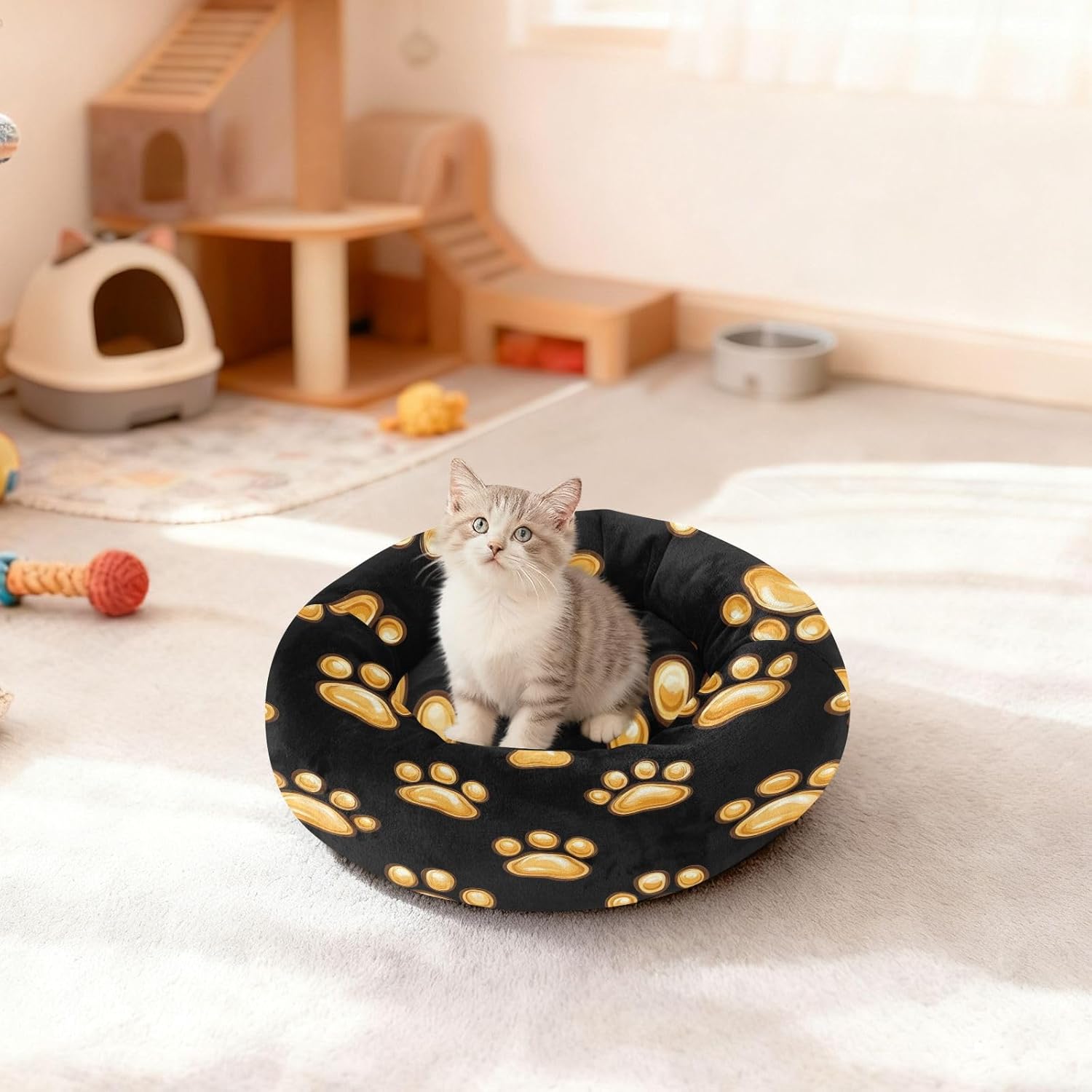 Product DescriptionMaterial Composition: Cotton Filling + Non-slip BaseSizes: XS/S/MSuitable For: Puppies, Small Dogs, Medium DogsFeatures- Soft plush fabric with a smooth, delicate texture provides pets with warm, comfortable tactile sensations- Round shape caters to pets' natural tendency to curl up, offering a sense of security- Slightly raised edges form a soft cushion for pets to lean against, preventing rolling off during sleep- Removable design allows for easy washing by pet owners