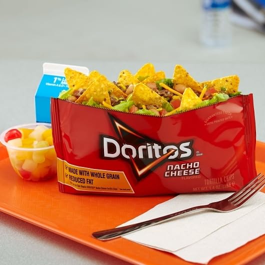 Top N' Go Doritos Nacho Tortilla Chips Are A Great Carrier For Nachos And Meal Solutions On The Tray In Schools. The Is A New And Fun Way For Students To Eat A Healthy Meal Right Out Of The Bag. Focus Is On High Schools Since This Package Offers A Full 2.0 Oz Equivalent Grain. Tray Only.