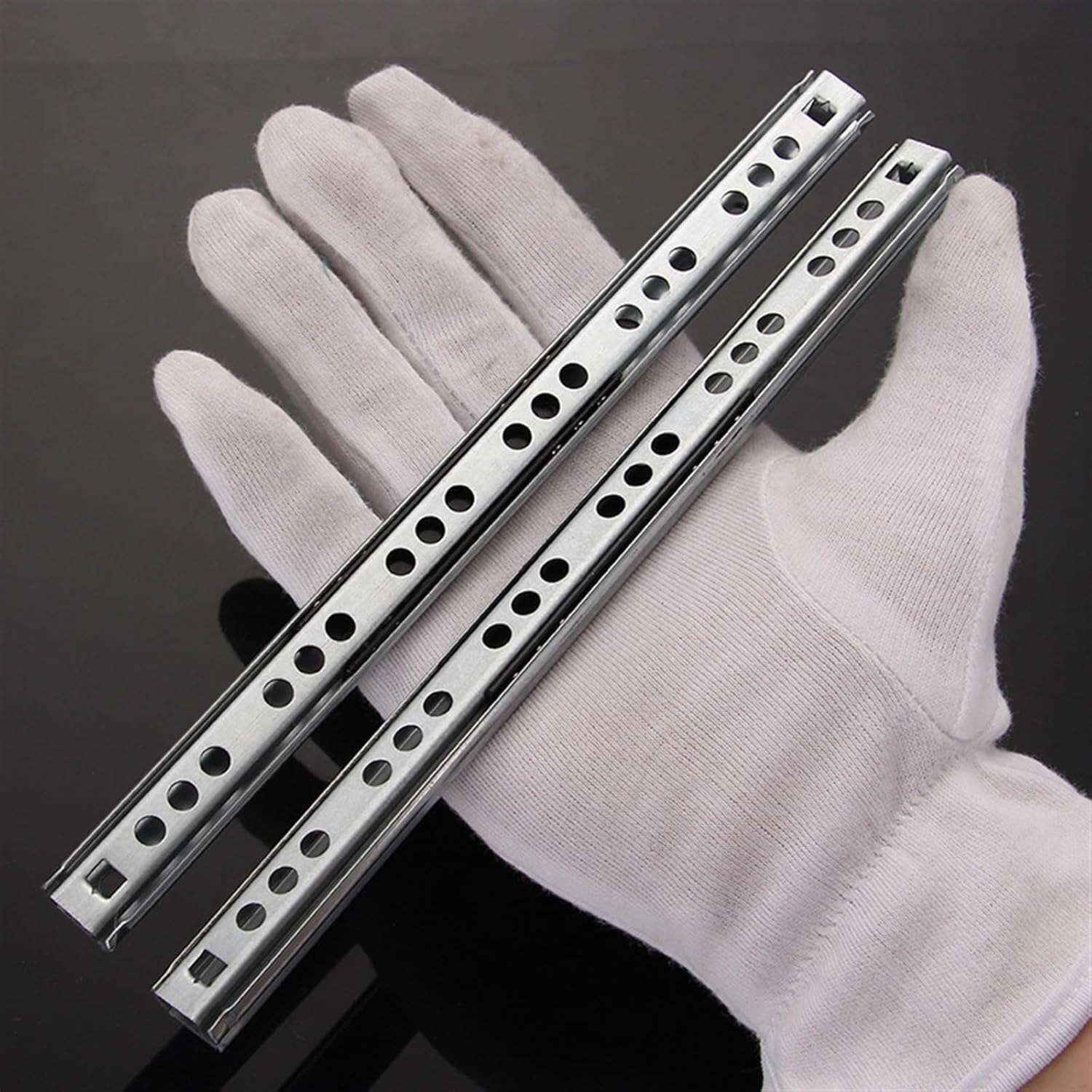 Description: Please note: 182mm - 500mm These telescopic full extension drawer slides are equipped with ball bearings with excellent workmanship that allow smooth and quiet sliding. Industrial standard width 17mm (about 0.66"). Side mounting and A 17mm slot mount with a length ranging from 8" to 16" can be selected, ideal for filing cabinets, desk pedestals and general storage drawer use. Features: * Ball bearing with excellent workmanship makes the scrolling quiet and smooth. * Really full extension 2-fold structure * Telescopic slides design with length ranging from 8" to 16", compatible with most drawers. *Side mount and 17mm slot mount can be selected. * Ideal for filing cabinets, desk pedestals and general use of storage drawers. Specifications:Material:Cold Rolled Steel Width: 17mm/0.66" Length: 182mm/8", 214mm/9", 246mm/10", 278mm/11", 310mm/13", 342mm/14", 374mm/15", 406mm/16" Weight: 100g Package included: 2 x Full Extension Metal Ball Bearing Telescopic Drawer Slides