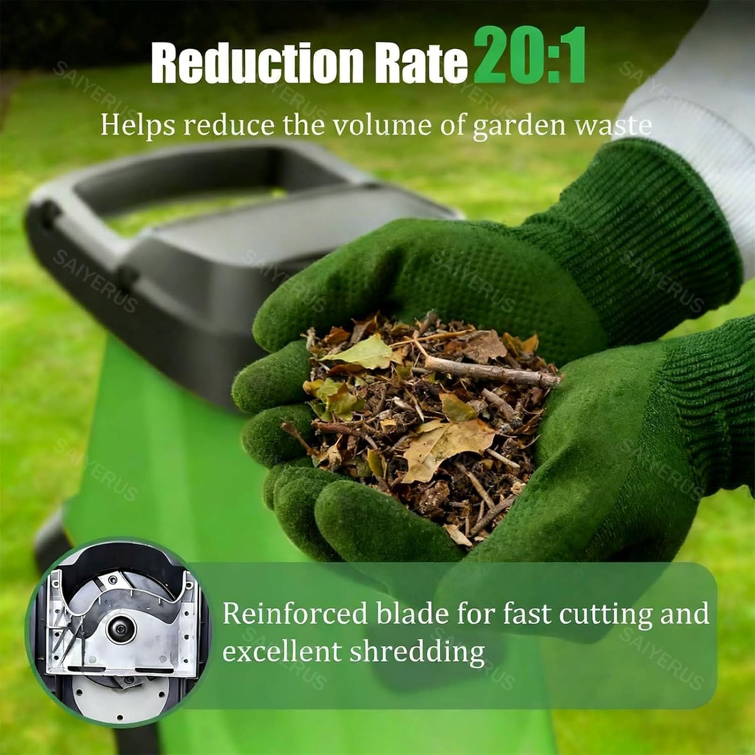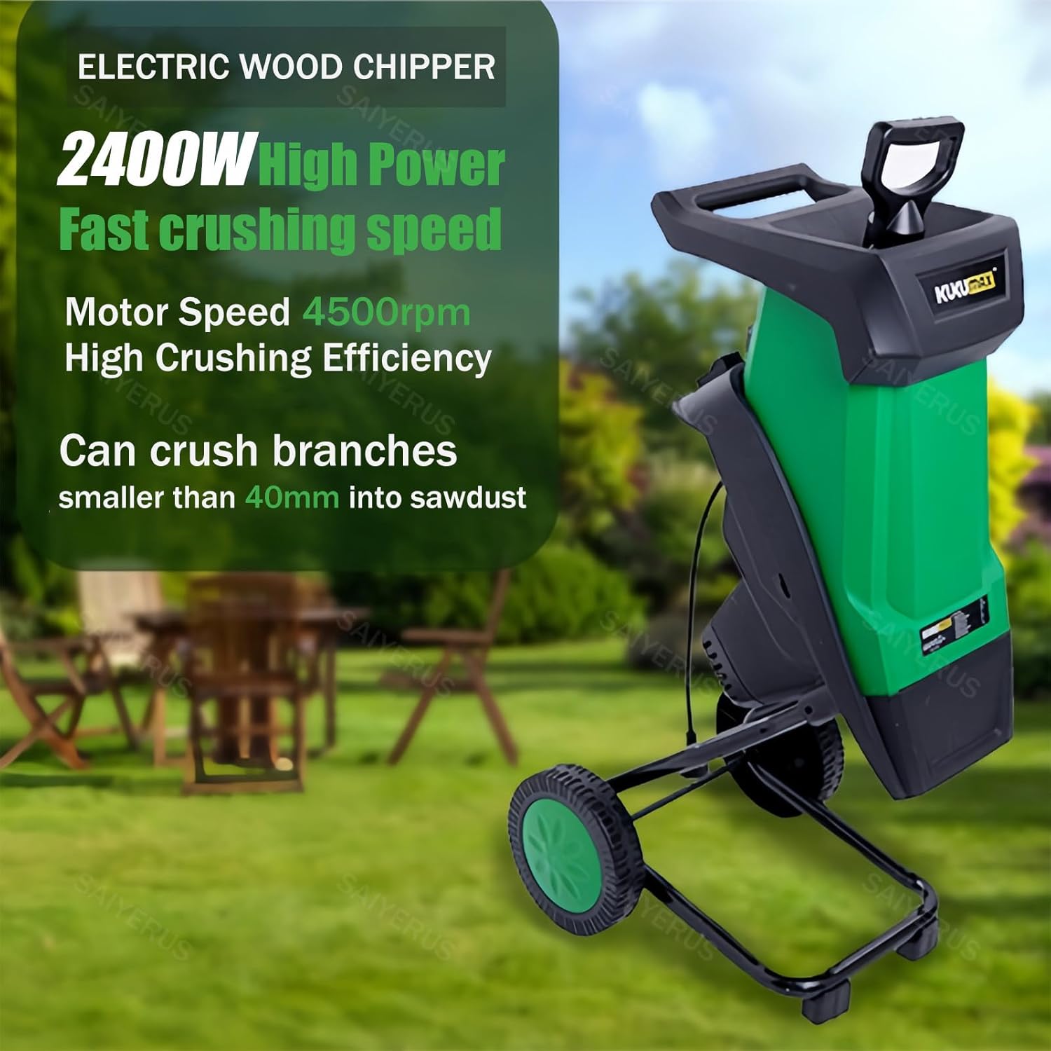 ✨ Transform your garden waste into valuable mulch with the 2400W Electric Garden Shredder!✅Designed for home gardeners, landscapers, and composting enthusiasts, this powerful shredder offers a professional-grade cutting system that handles branches up to 40mm thick with a no-load speed of 4500RPM. Its 2400W copper motor ensures reliable and consistent shredding performance for both dry and green debris.✨ Efficient Design for Maximum Productivity!✅The 50L collection bag minimizes interruptions, allowing you to shred continuously without frequent stops. The integrated wheels make transport effortless, whether across lawns, patios, or gravel. This dual-function machine acts as both a wood chipper and leaf mulcher, delivering uniform mulch ideal for composting and garden bed enhancement.✨Safe-ty and Reliability You Can Trust!✅The shredder features an automatic safe-ty switch, overload protection, and blockage protection. These mechanisms pro-tect both user and motor, ensuring safe operation.【Technical Specifications】● Product model: HT6533● Name: Electric garden shredder● Materials: ABS + Copper + Steel● Color: Green + Black● Voltage: 220V 50Hz● Power: 2400W● No-load Speed: 4500rpm● Cutting Diameter: 39mm (max, suitable for branches ≤4cm)● Noise Level: 110dB● Collection Capacity: 50L/13gal● Weight: 11.5kg● Package Size: 64 x 32 x 38.5cm【Package Includes】- Electric garden shredder x 1- 50L collection bag x 1- Safe-ty push rod x 1- User manual x 1▶ Order now and make yard cleanup a breeze!▶ If you have any questions, please ask us at any time and I will reply you within 8 hours.